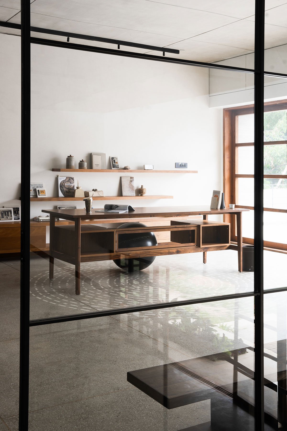 A Timeless Expression of Craft and Space: Ame Design Studio is more than just a built form; it is a celebration of materiality, light, and spatial poetry. Every element, from its monolithic presence to the delicate interplay of textures, embodies a deep commitment to craftsmanship. The balance between solidity and transparency, enclosure and openness, creates an environment that is both grounding and liberating—a place where art and architecture engage in a quiet yet profound dialogue.