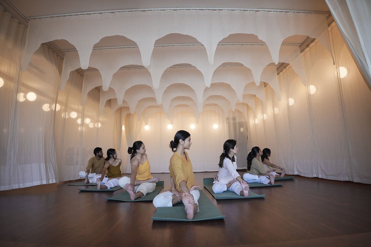 Excerpt: Ameya Yoga Studio by Saransh is an interior design project that utilizes layers of curtains to create a tranquil ambience. The studio features carefully selected curtains that create a visual flow resembling Bharatnatyam dance and yoga movements. They provide a soothing rhythm and seclusion, while a curved layer adds drama during performances, enhancing the studio’s ambience.