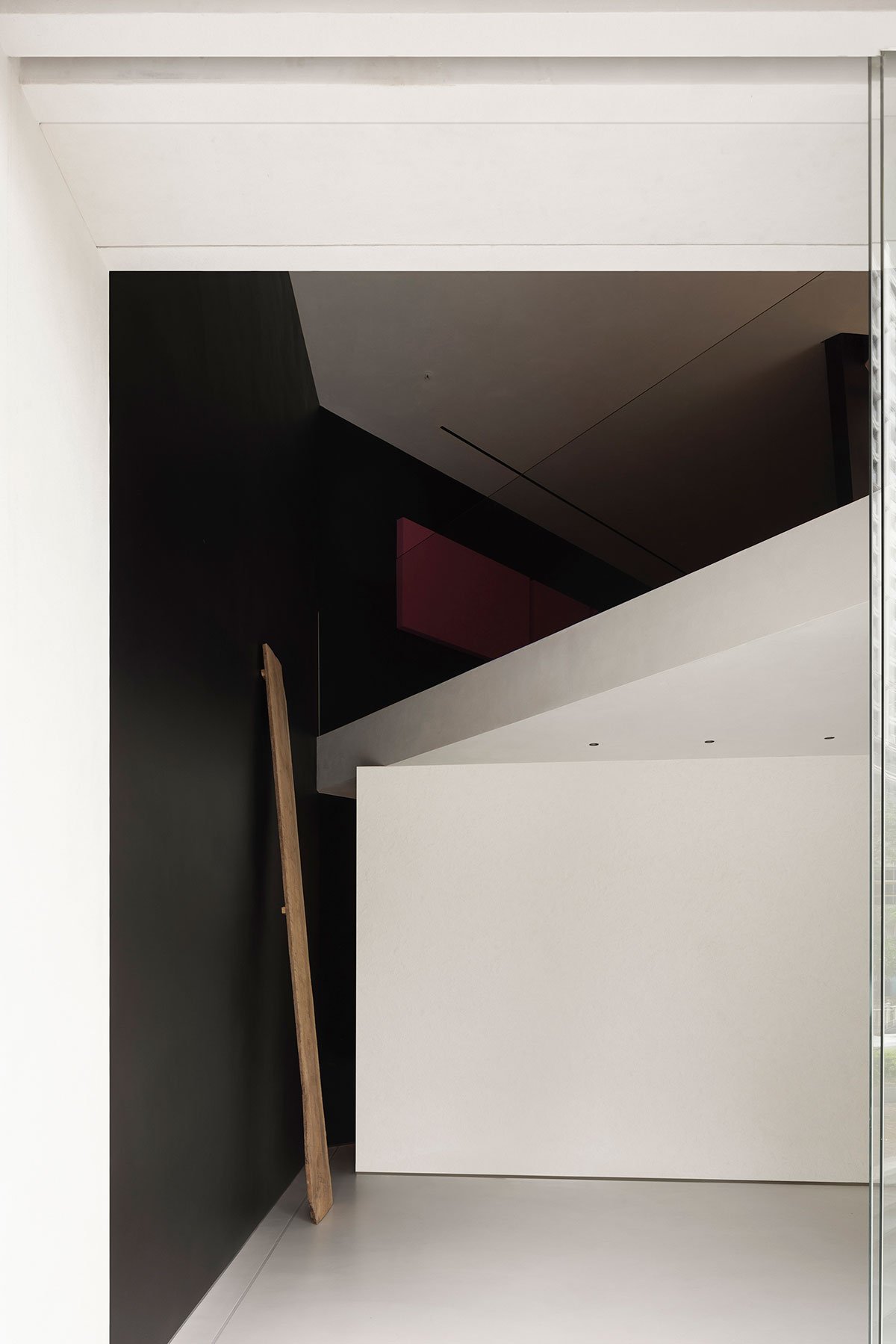 Excerpt: Anbong Home Showroom, an interior design project by AD Architecture, features a complex, multi-layered design that creates irregularly shaped spaces. A narrow entrance offers a subtle prelude into the exhibition hall, while the slanted surfaces within the main space enhance the experience. AD Architecture’s cohesive design language enriches the space with diversity, allowing for an immersive minimalist art experience.