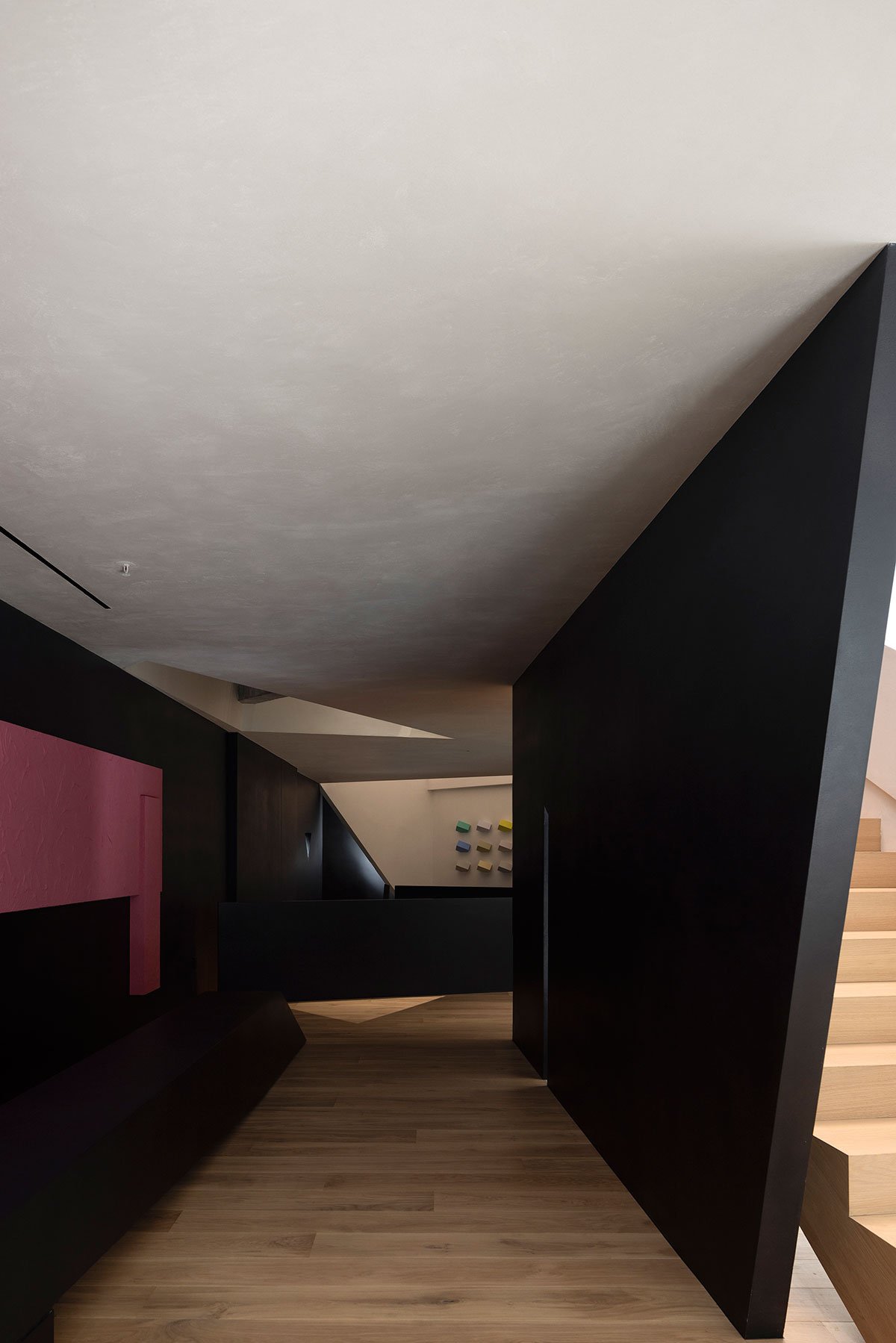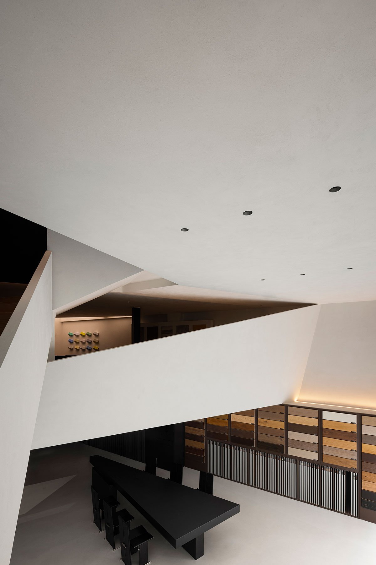 [Text as submitted by architect] Constructing a sense of balance from an imbalance: This showroom project features Beamy flooring collections and the Italian brand OIKOS, located in the New East Coastal Area of Shantou. In commercial design, the overall space is conceived based on product positioning, aiming to guide the region’s aesthetic preferences. In recent years, AD ARCHITECTURE has consistently led the way in commercial design, achieving numerous successes through innovative design and branding solutions.