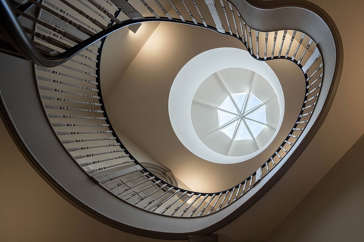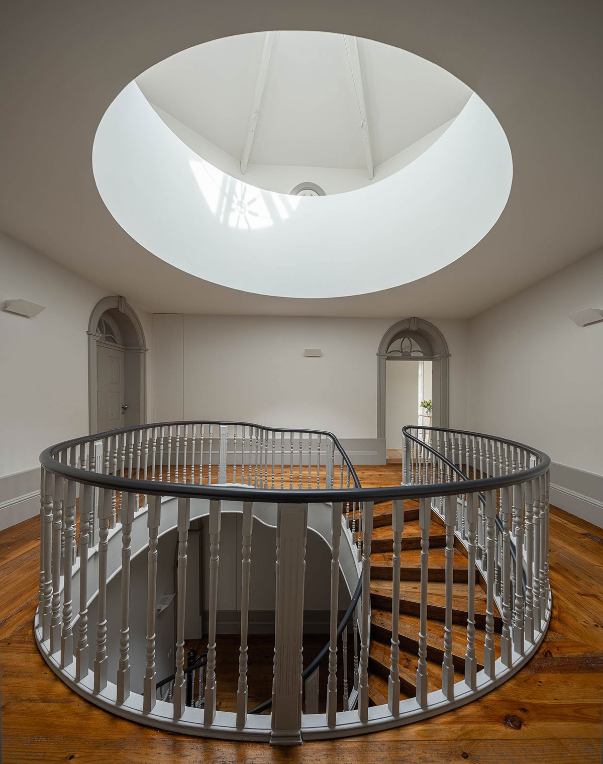 [Text as submitted by architect] Built in the mid-19th century to be the house of a Douro nobleman, the building’s fame was consolidated over time by the meticulous decoration of the woodwork, framed within the compositional rigour of the 19th-century facade, and the incredible staircase in the core of the building, which extends to the top floor and is topped off by the central skylight.