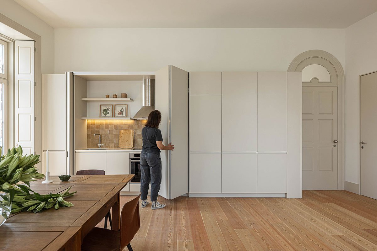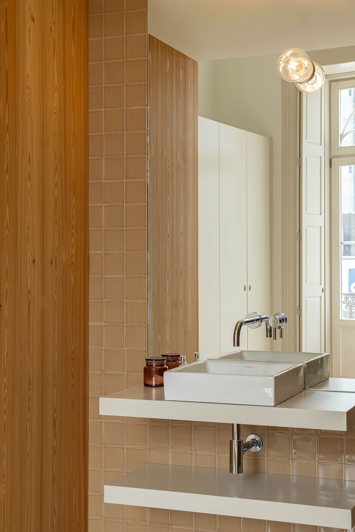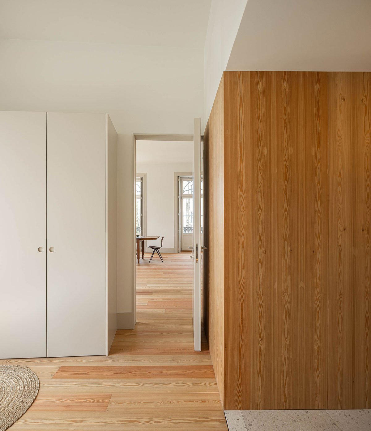 The project tried to respect the incredible polyvalence of a building that was once almost everything, keeping the organization of the common areas and accesses, the careful decorative work that survived in the stonework of the facade and in the interior and exterior carpentry and the constructive system used in the slabs and central staircase. The tension between the scale of the original building and the domestic uses now introduced is accentuated by the elemental design of the new elements, emphasising the textures and colours of the materials.