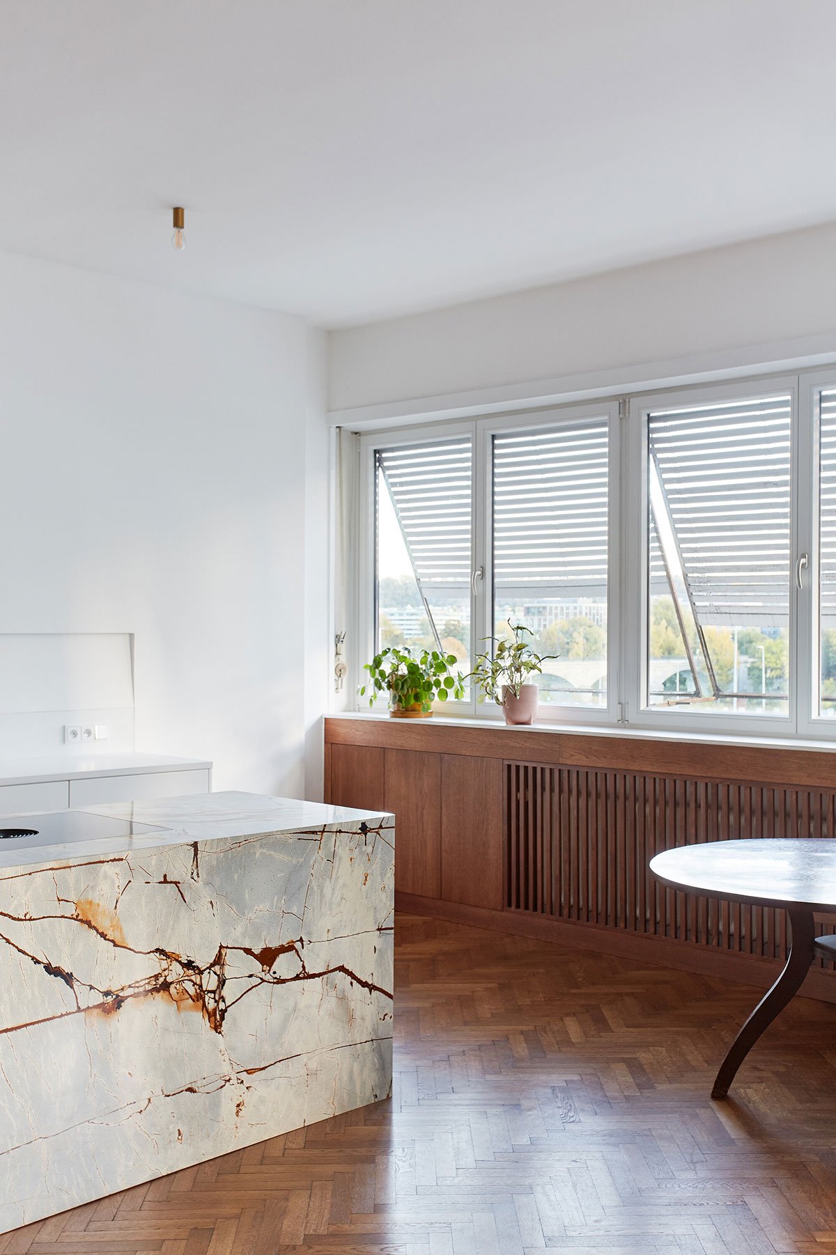 [Text as submitted by architect] The reconstruction deals with a 125 m2 apartment located in a functionalist house by Eugen Rosenberg made of a reinforced concrete skeleton near Strossmayer Square in Prague. The reconstruction and adaptation of spaces that are predefined from the beginning, either by the materials used or by a certain spatial division, is always a great challenge. The designers try to preserve the character of the space, but on the other hand, there is always the necessity to adapt it to the current demands of living and, last but not least, to the demands of a particular owner.