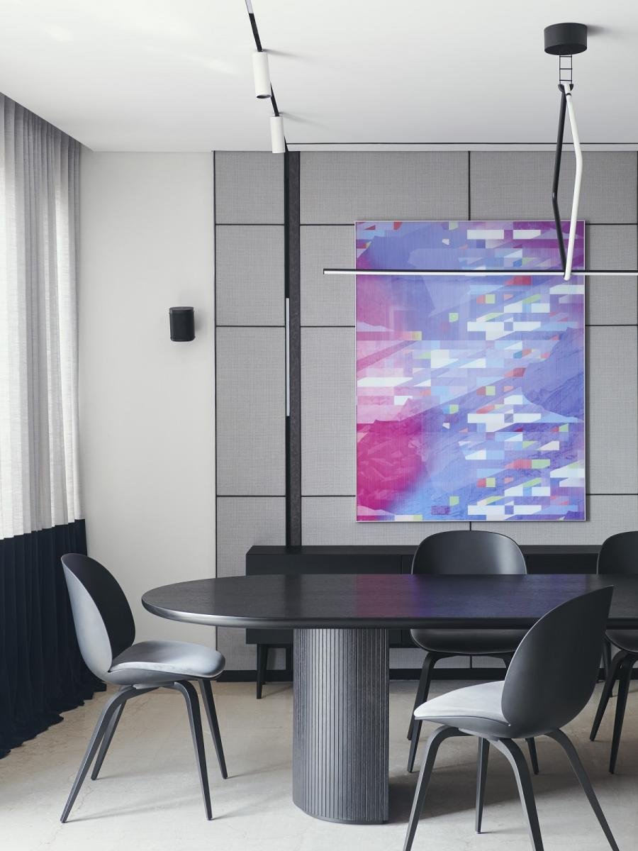[Text as submitted by the Architect] Home to a fond art collector, this apartment reflects the personalities of its owners. The project intended to design a sleek, minimal, and contemporary home where the creative energy was focused on the artwork.