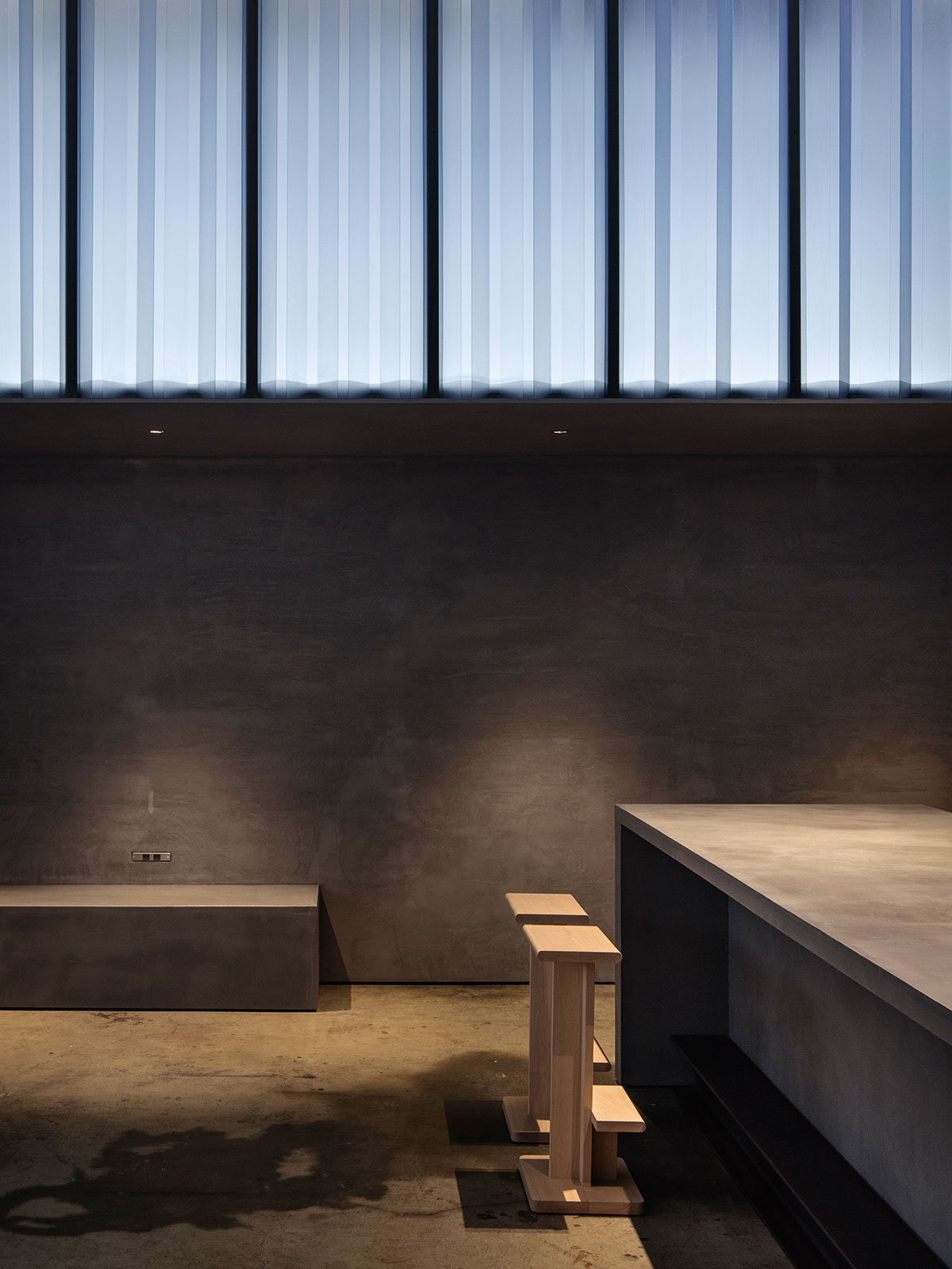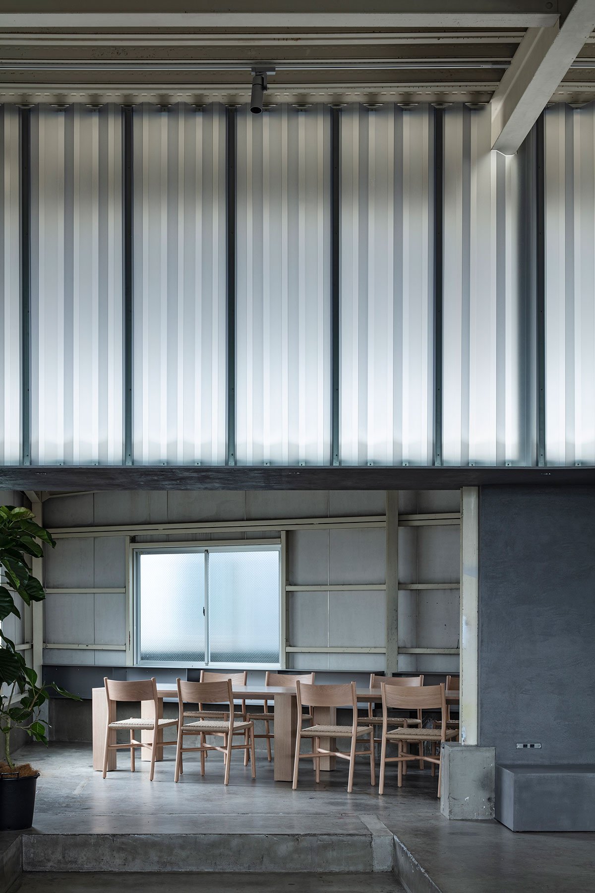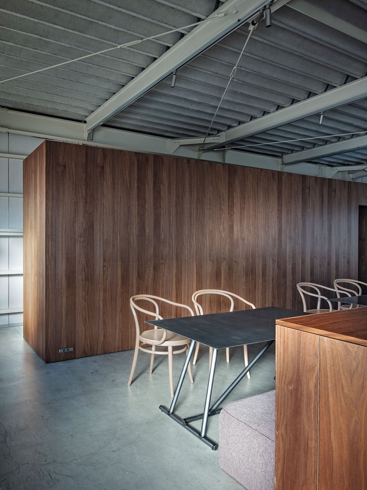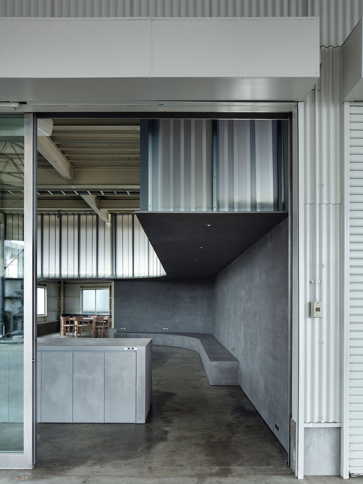 The first floor was originally a space with high ceilings and pleasant light from outside, so a light wall was added while separating the warehouse functions. By adding a light wall, the designers planned to soften the sense of enclosure while still allowing people to feel the light from outside. Only the outline of the space and the necessary functions were included, and the rest of the space was left as a margin that can flexibly change.