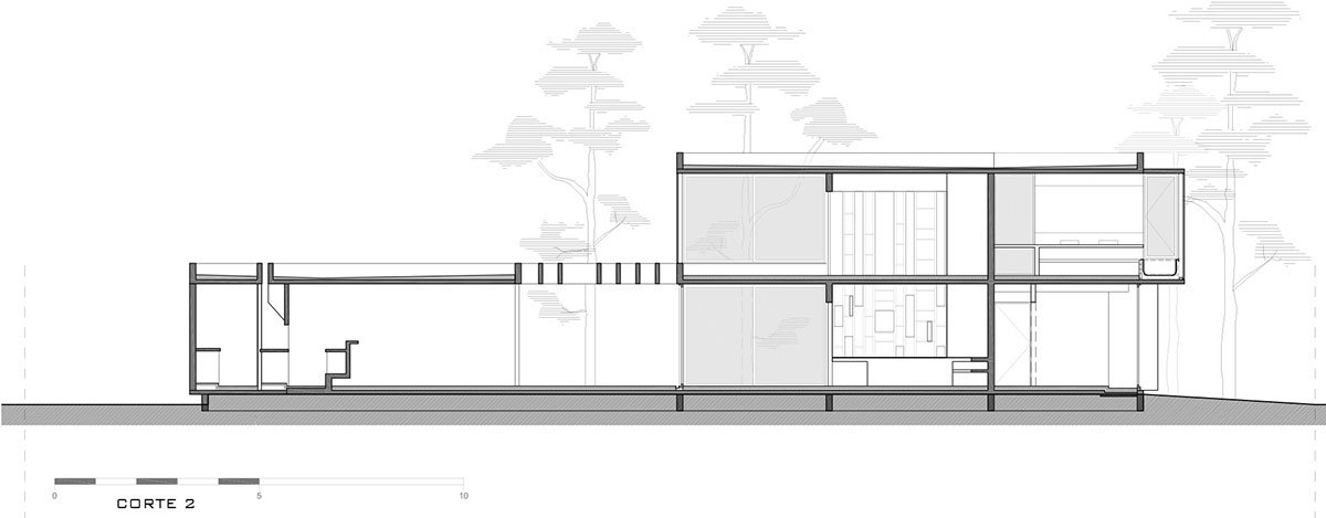 The Proposal: Interested in the landscape, the designers decided that the project should not only preserve the existing trees in the lot, but that vegetation would be the first and fundamental starting point of the project.