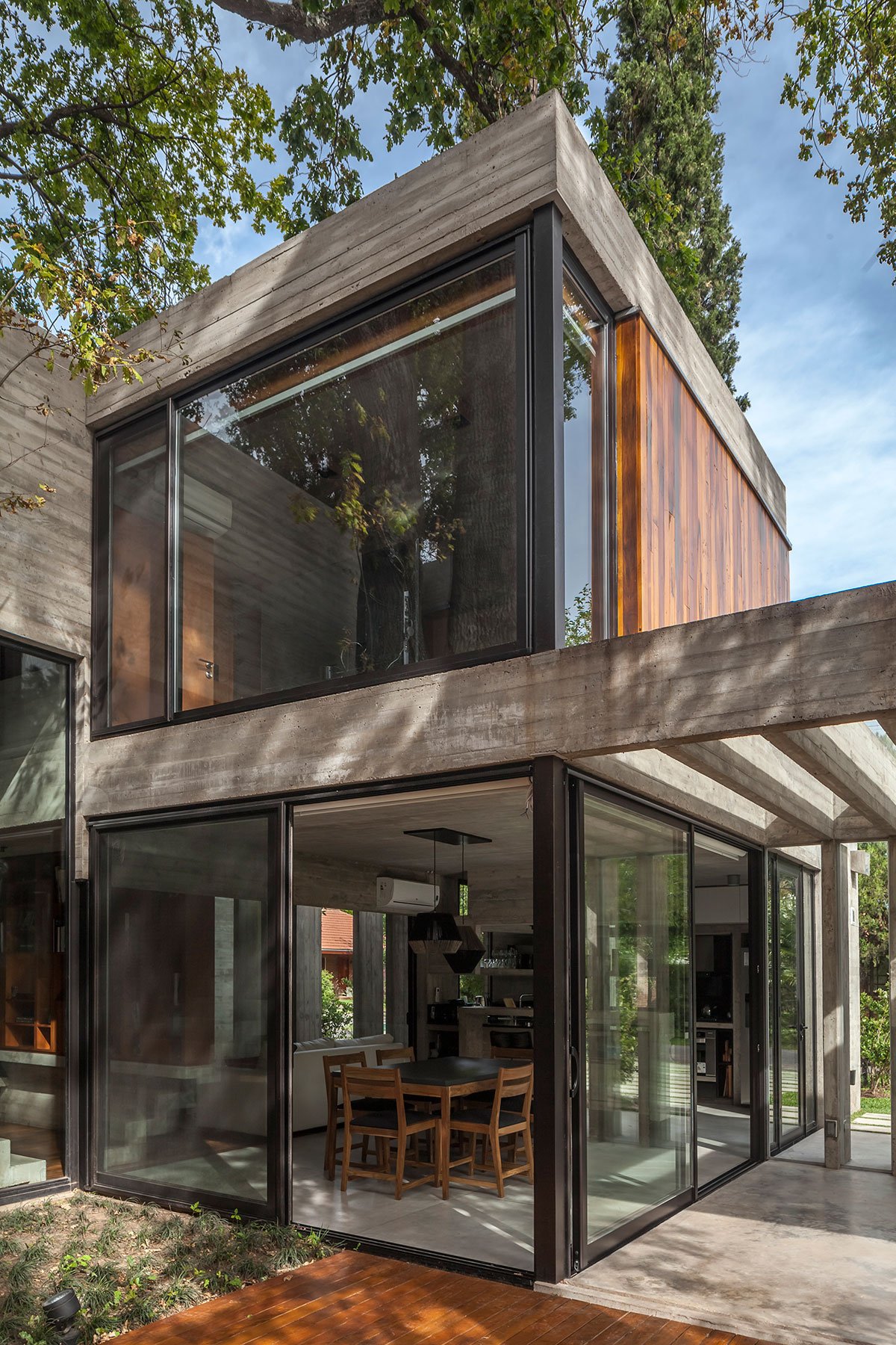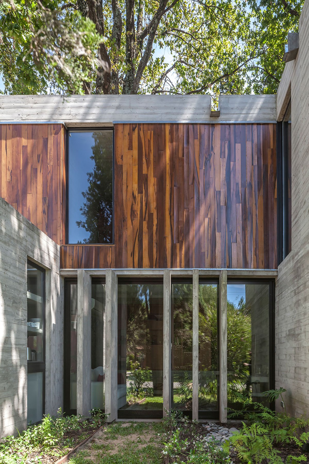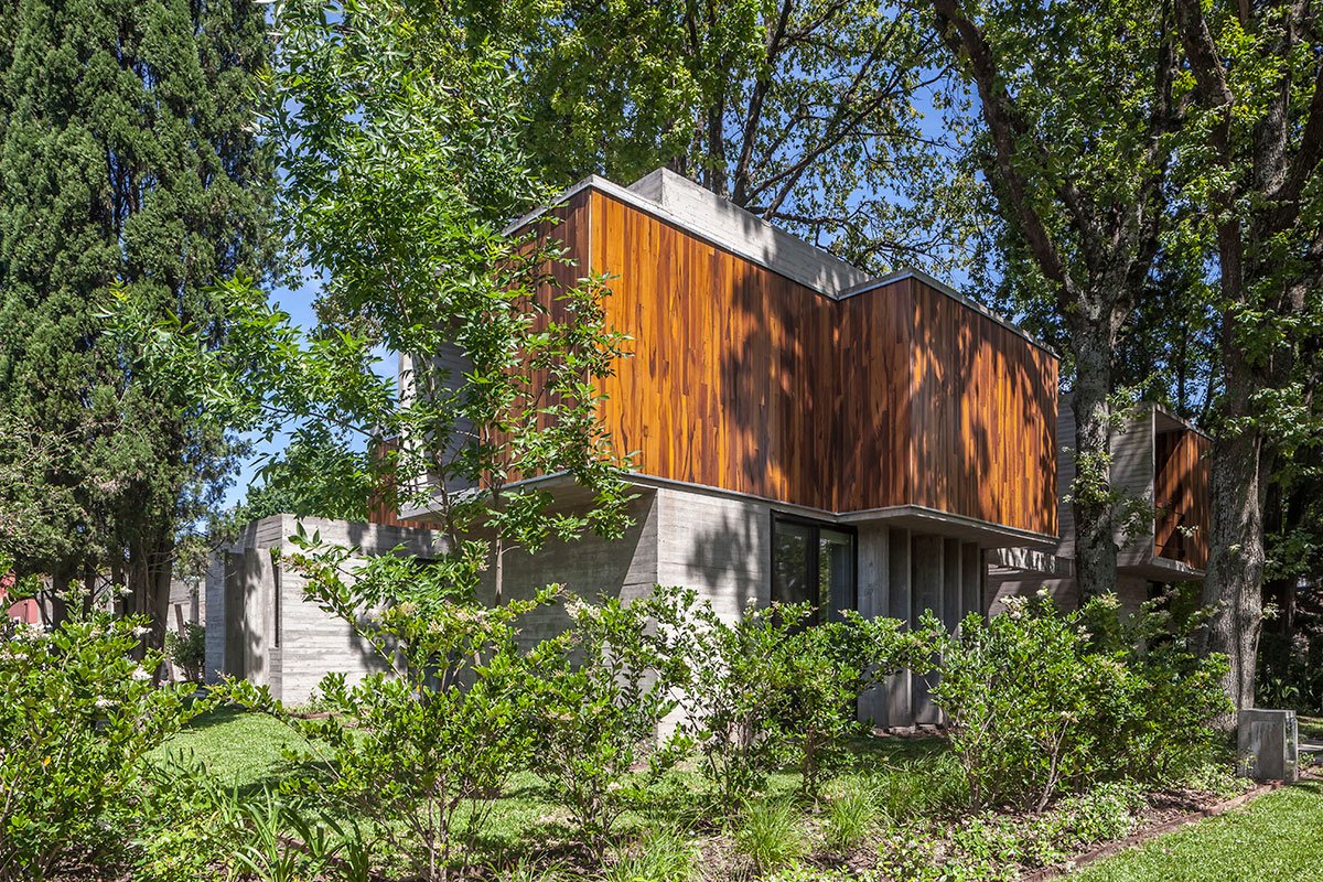 Excerpt: Aranzazu House by Besonias Almeida arquitectos is a project that takes vegetation as the first and fundamental starting point of the project. The residence accommodates itself in the voids left by the trees and wraps them to make them part of the proposed spaces. Built in exposed concrete, the house breaks its monochromatic expression by incorporating wooden elements in the facade.