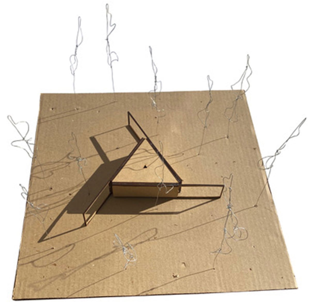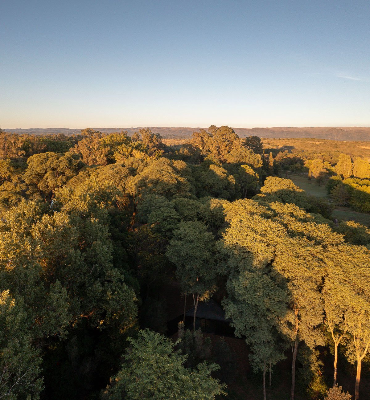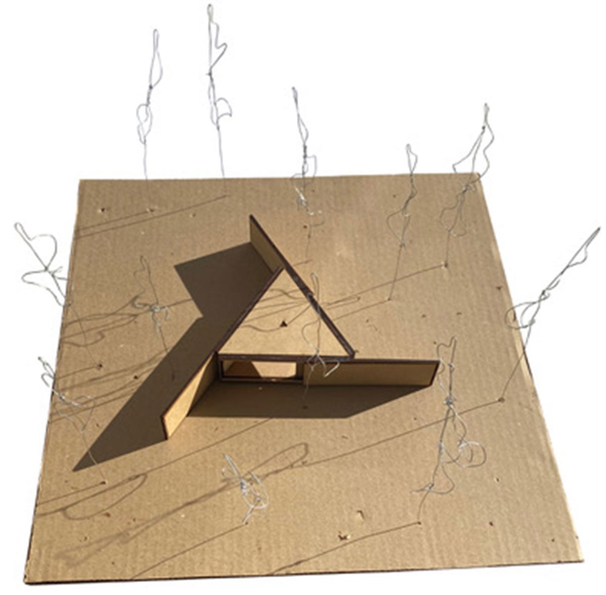Its strategic location responds to the passage between the old town of Estancia La Paz, now transformed into a hotel, the bar of a golf course, and a panoramic route around a lake. The site conditions determined a volume with three entrances or openings that act as hierarchical circulations instead of a main façade, resulting in its triangular geometry.