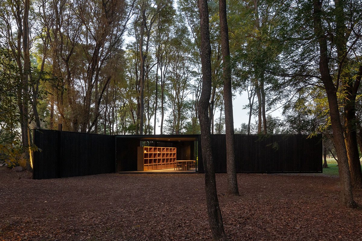 The main characteristic of the space is the possibility of opening or closing it completely, thanks to a series of three nine-meter sliding walls that connect or separate it from the surrounding landscape, reconfiguring the immediate environment according to the moment’s needs.