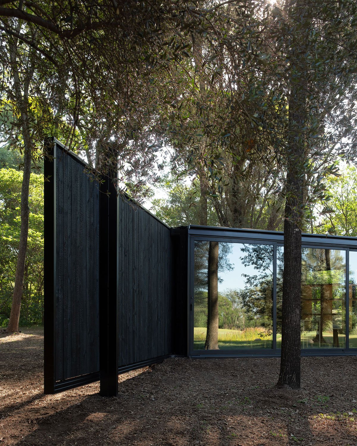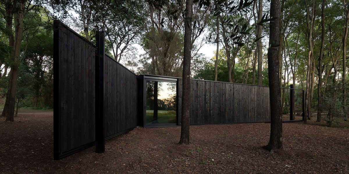 Excerpt: Archipelago Pavilion Author Houses, designed by Alarcia Ferrer Arquitectos, has a volume with three entrances or openings that act as hierarchical circulations instead of a main façade, resulting in its triangular geometry. The design has a series of three nine-meter sliding walls that connect or separate it from the surrounding landscape, reconfiguring the immediate environment according to the moment’s needs.