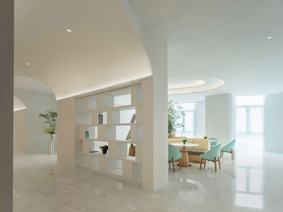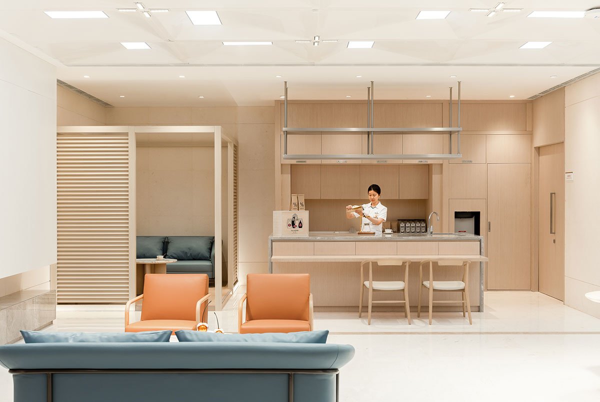 Privacy is paramount for patient comfort and outcomes, yet excessive seclusion risks fostering loneliness. The design reconciles this through: a dedicated entrance featuring layered spatial sequences (screen walls, subtle thresholds) to convey exclusivity. And the Soft partitions (bookshelves, screens, floral installations) divide consultation, dining, and rest areas, maintaining connectivity while ensuring discretion.
