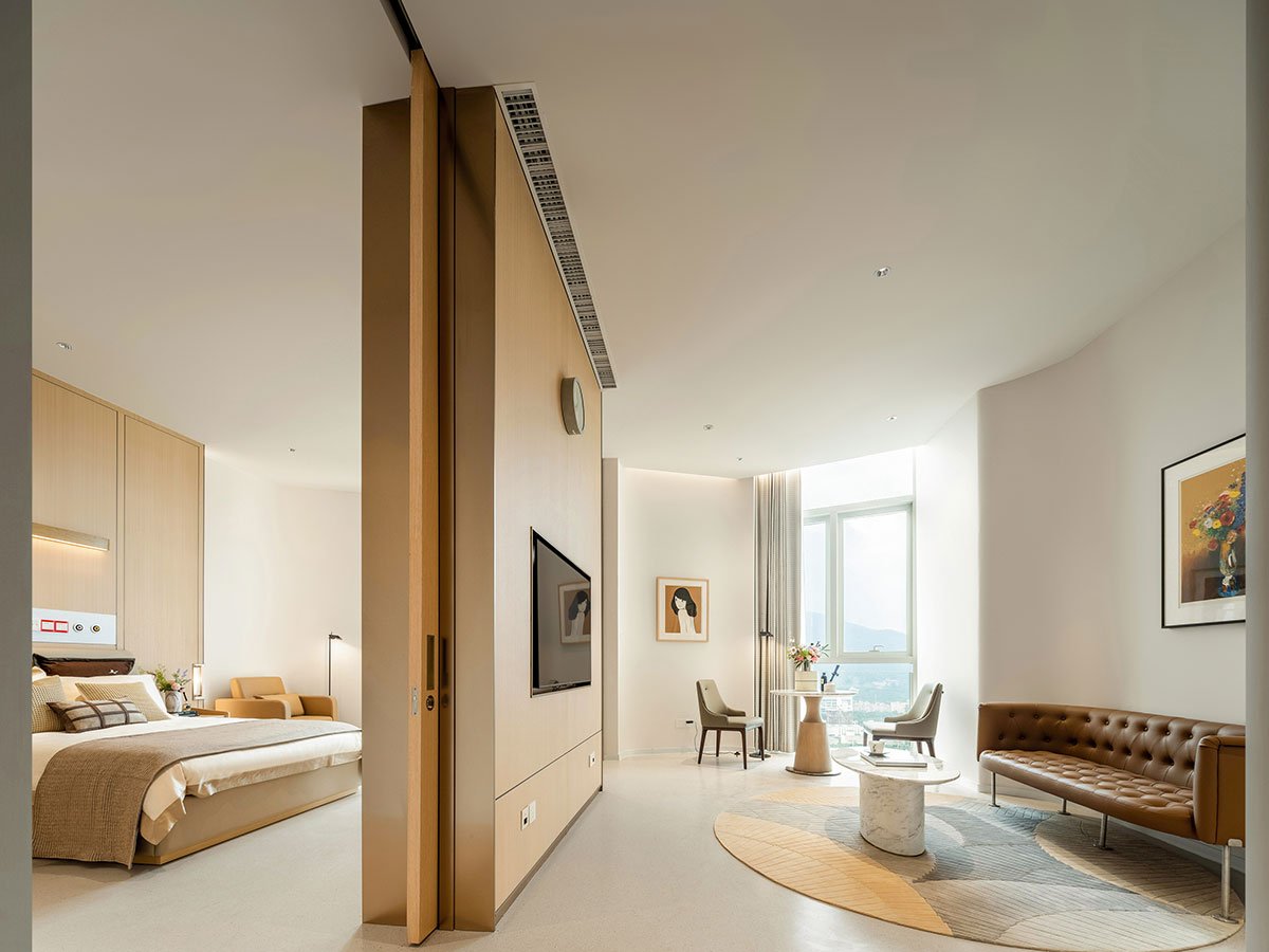 [Text as submitted by architect] Taikang Hospital International Medical Center: The holistic spatial design of Shenzhen Qianhai Taikang Hospital’s International Medical Center represents a pioneering exploration of healing through art, developed in collaboration with Taikang’s design management and medical teams. In early 2023, Felix Law and his team, WIT DESIGN & RESEARCH, presented the concept of “art therapy” to Taikang’s senior executives and medical specialists. A year and a half later, the vision was successfully realized in this groundbreaking facility.