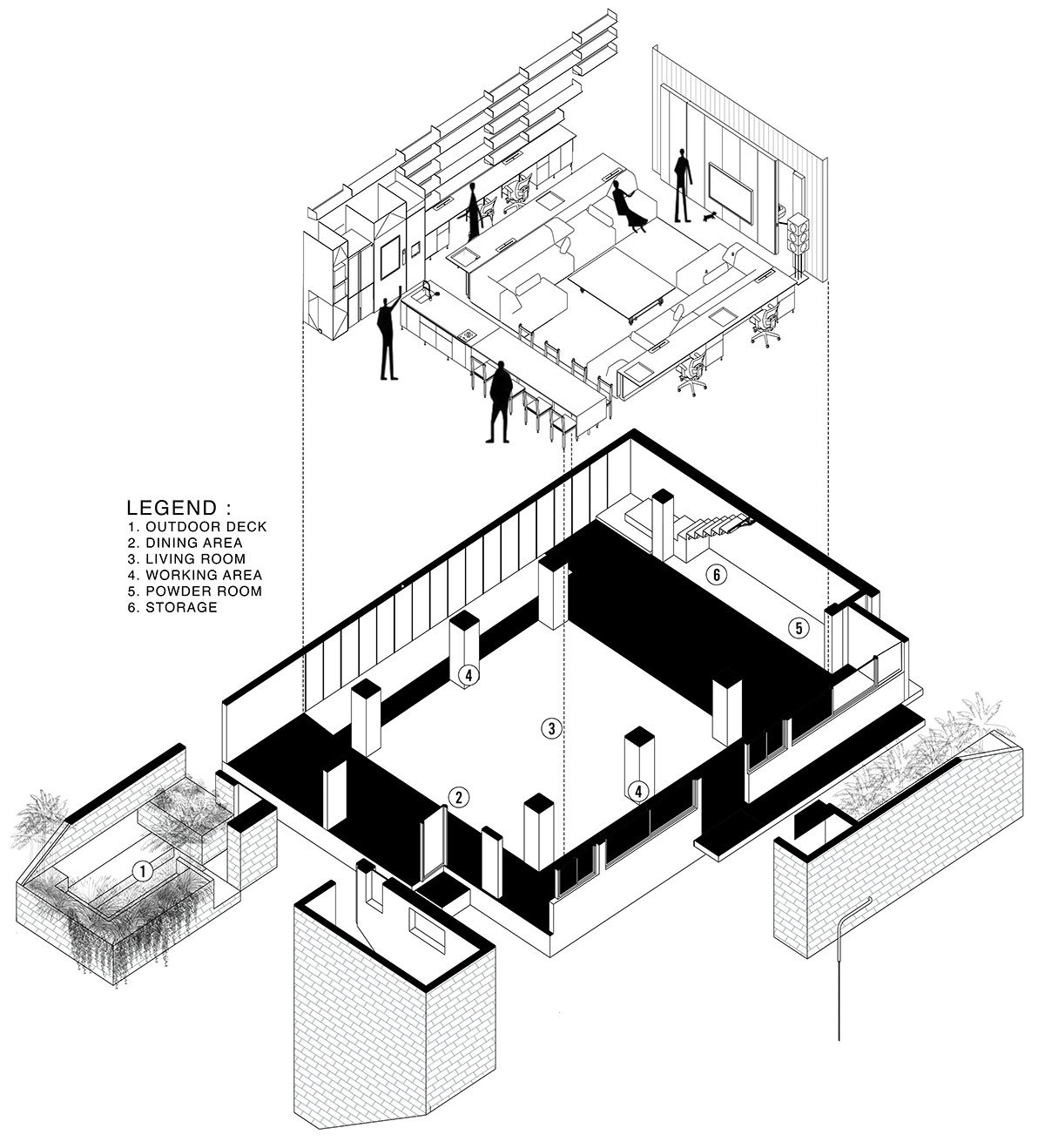 The open layout design eliminates barriers, removing walls and corridors within the space. By optimizing the existing structure, the design ensures that all floors above ground are open plans, minimizing walls or heavy elements that could disrupt the flow.