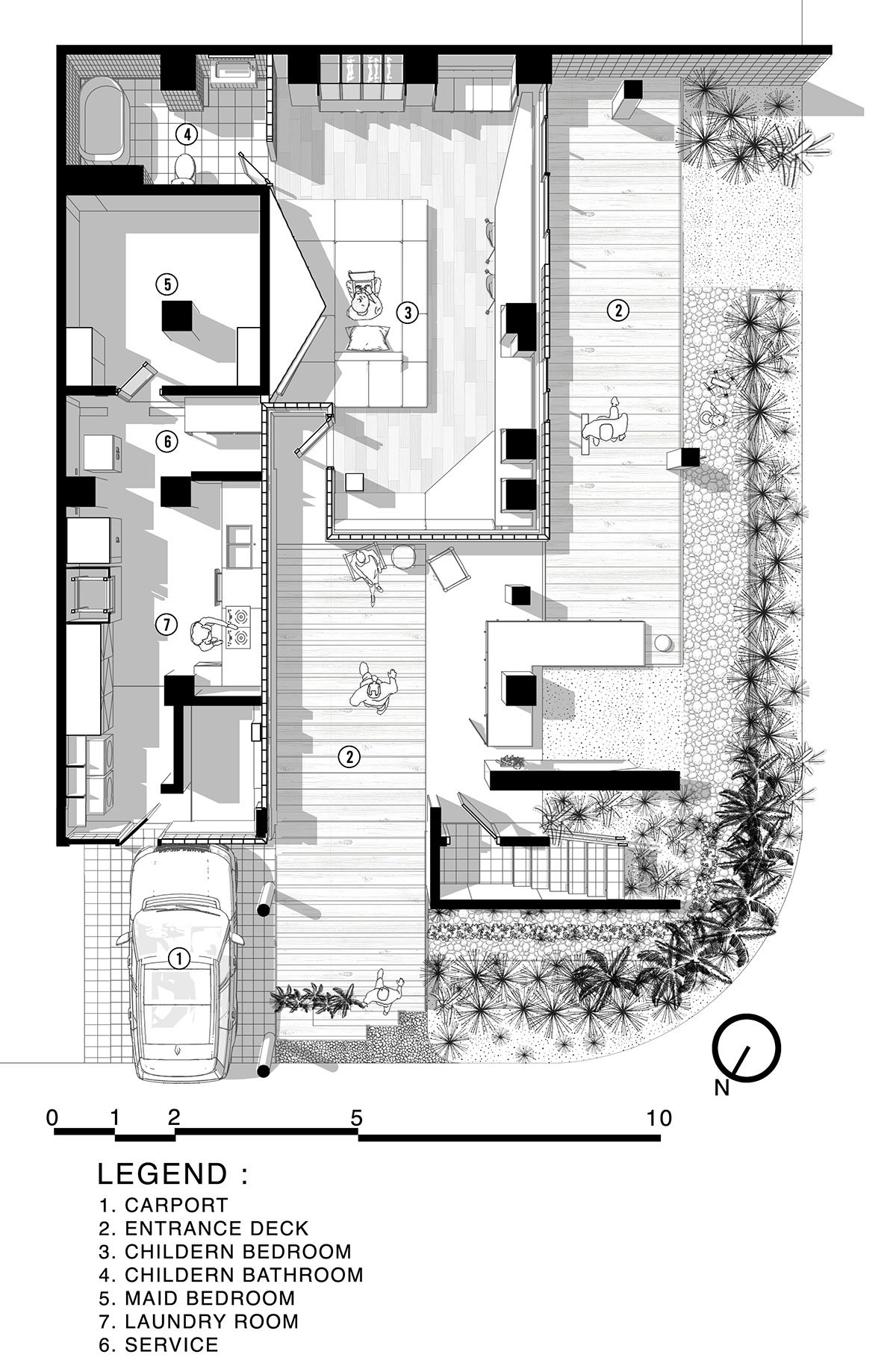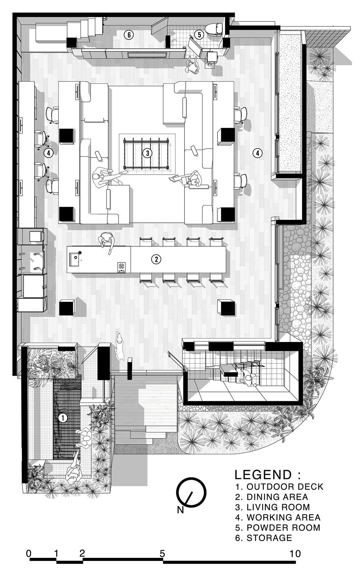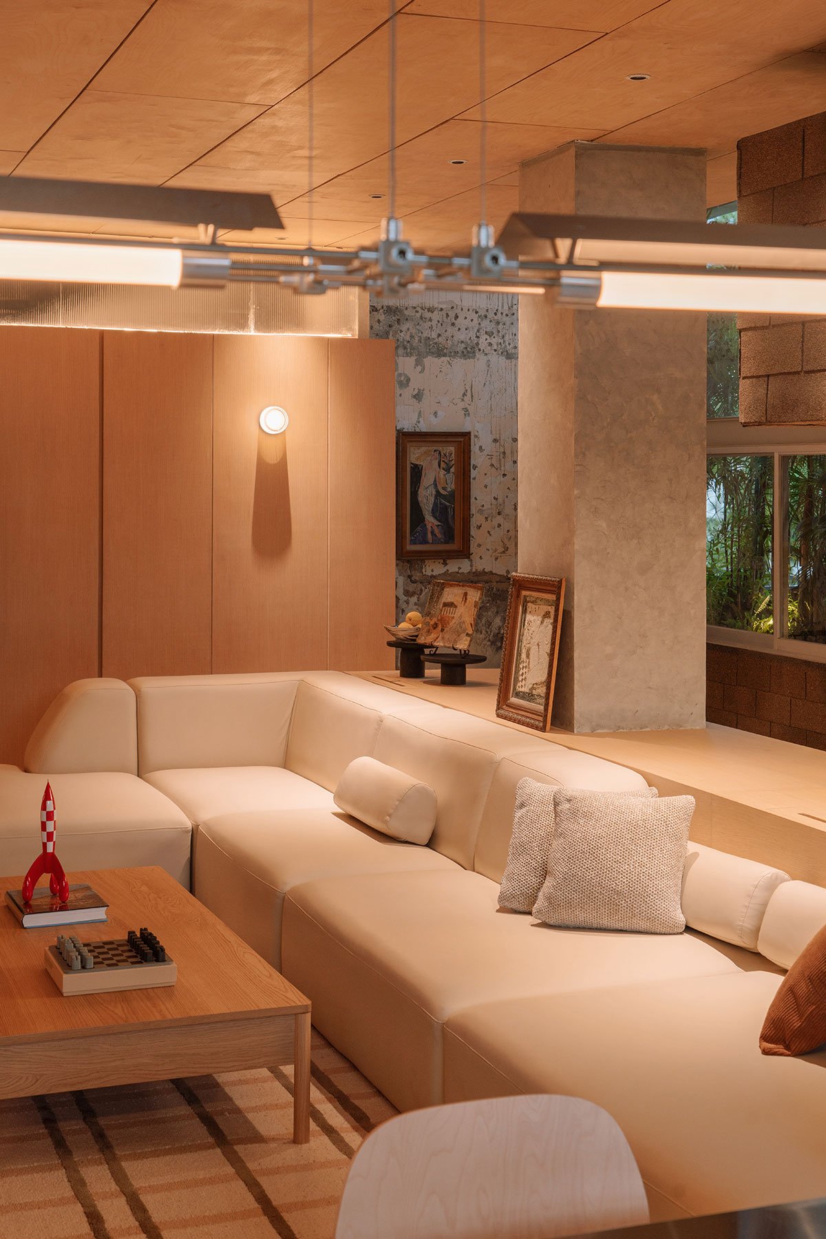 This approach creates a series of alternating spaces characterized by intimacy and openness, light and shadow, offering room for growth and moments of variation through the strategic arrangement of furniture across the space, which interacts harmoniously with the existing structure and nature.
