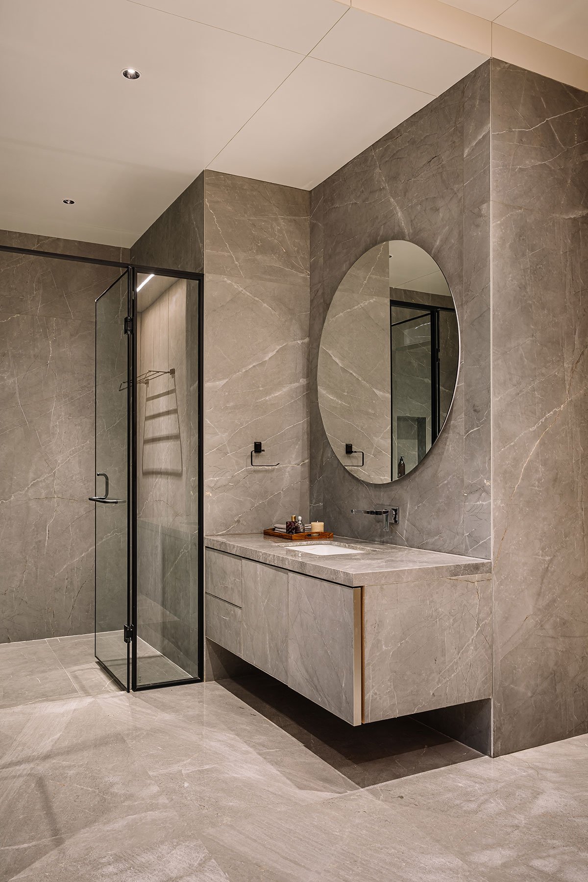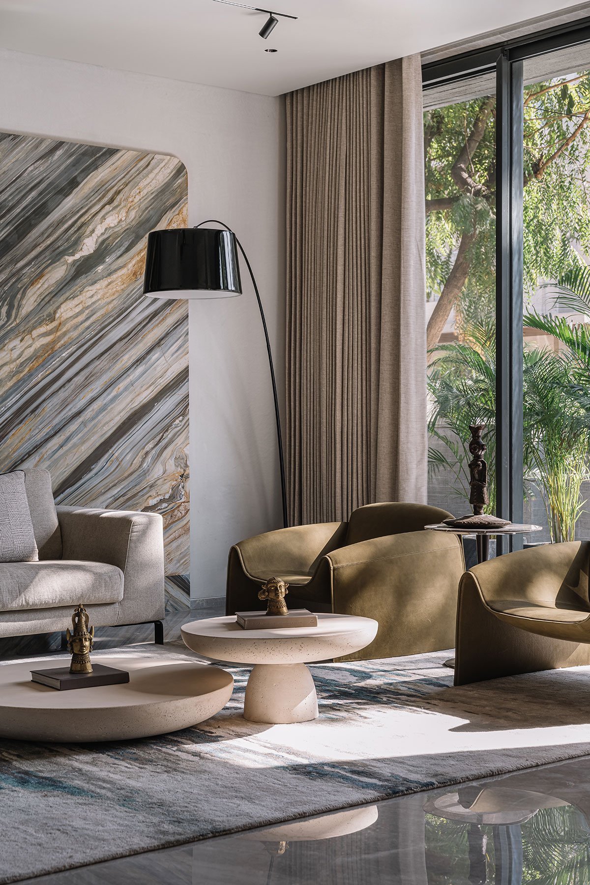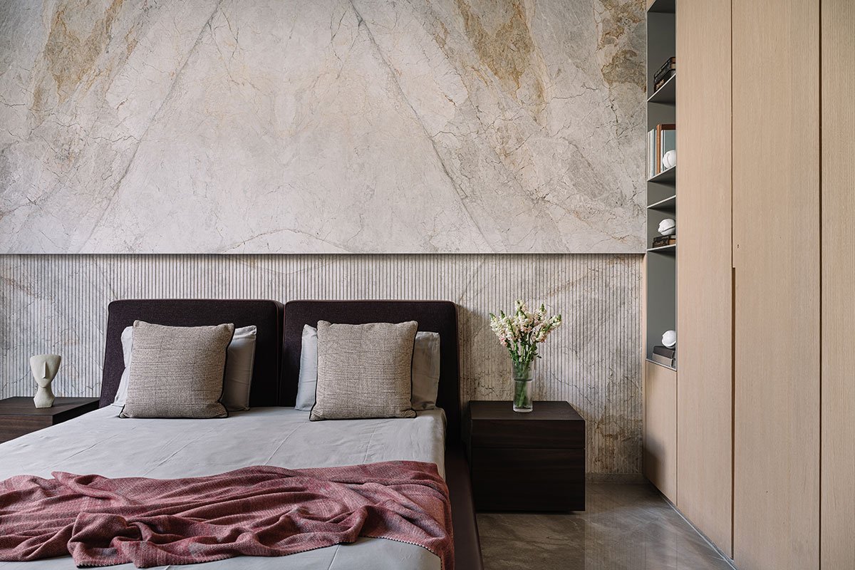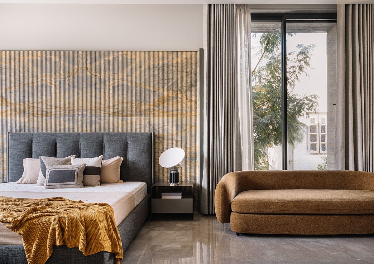 This idyllic home boasts not only exquisite terrace gardens and captivating cut-outs in its overhangs but also an elegant interior adorned with beautiful Italian marbles and thoughtfully designed custom spaces that cater to the needs of every family member.