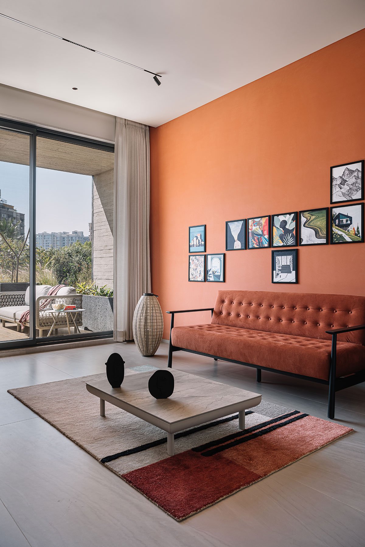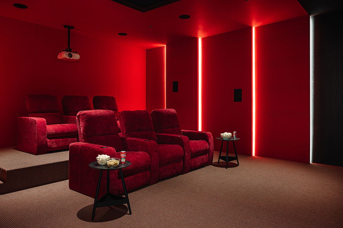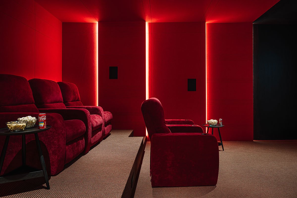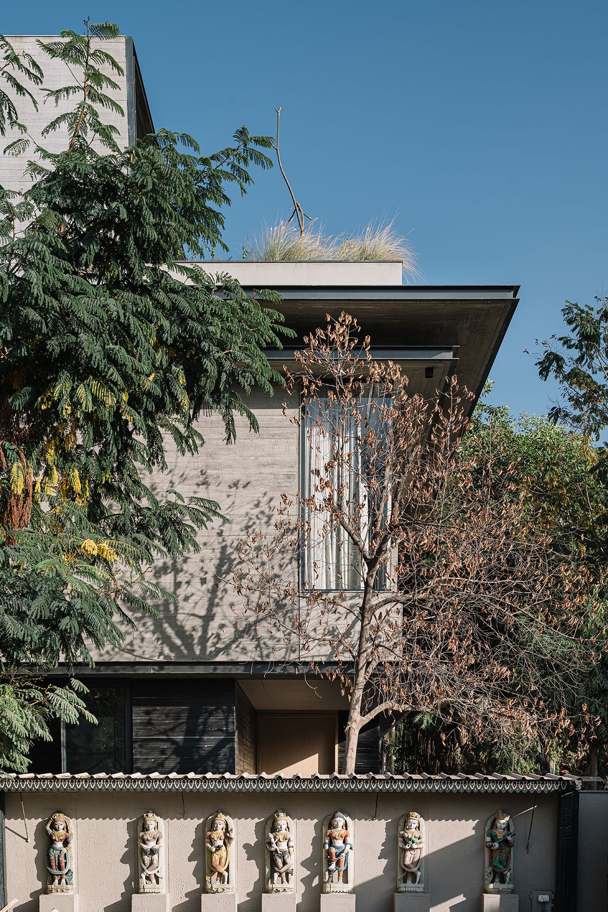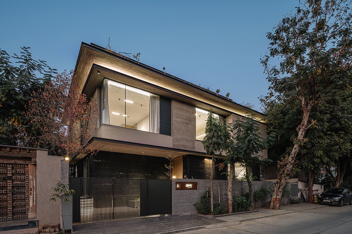 [Text as submitted by architect] Nestled within an urban landscape, the Austere residence is the perfect balance between modern aesthetics and natural elements. The exposed concrete house showcases a seamless fusion of indoor and outdoor living, ingeniously incorporating overhangs, lights, and a landscape that blurs the boundaries between interior and exterior spaces.