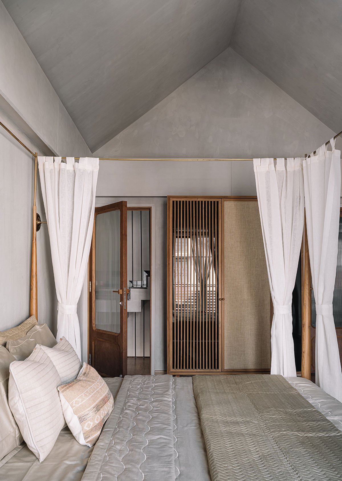 The weekend home is envisioned with natural and minimal materials which has been retained in its pure state. A soothing and earthy colour palette provides the perfect respite from the hustle and bustle of daily life. The design incorporates elements of traditional Indian architecture with a minimalist approach, creating a space that is both cozy and tranquil. The spaces envisaged were both singular and diverse, connected yet separated synchronously to allow the privacy and multiplicity to co-exist.