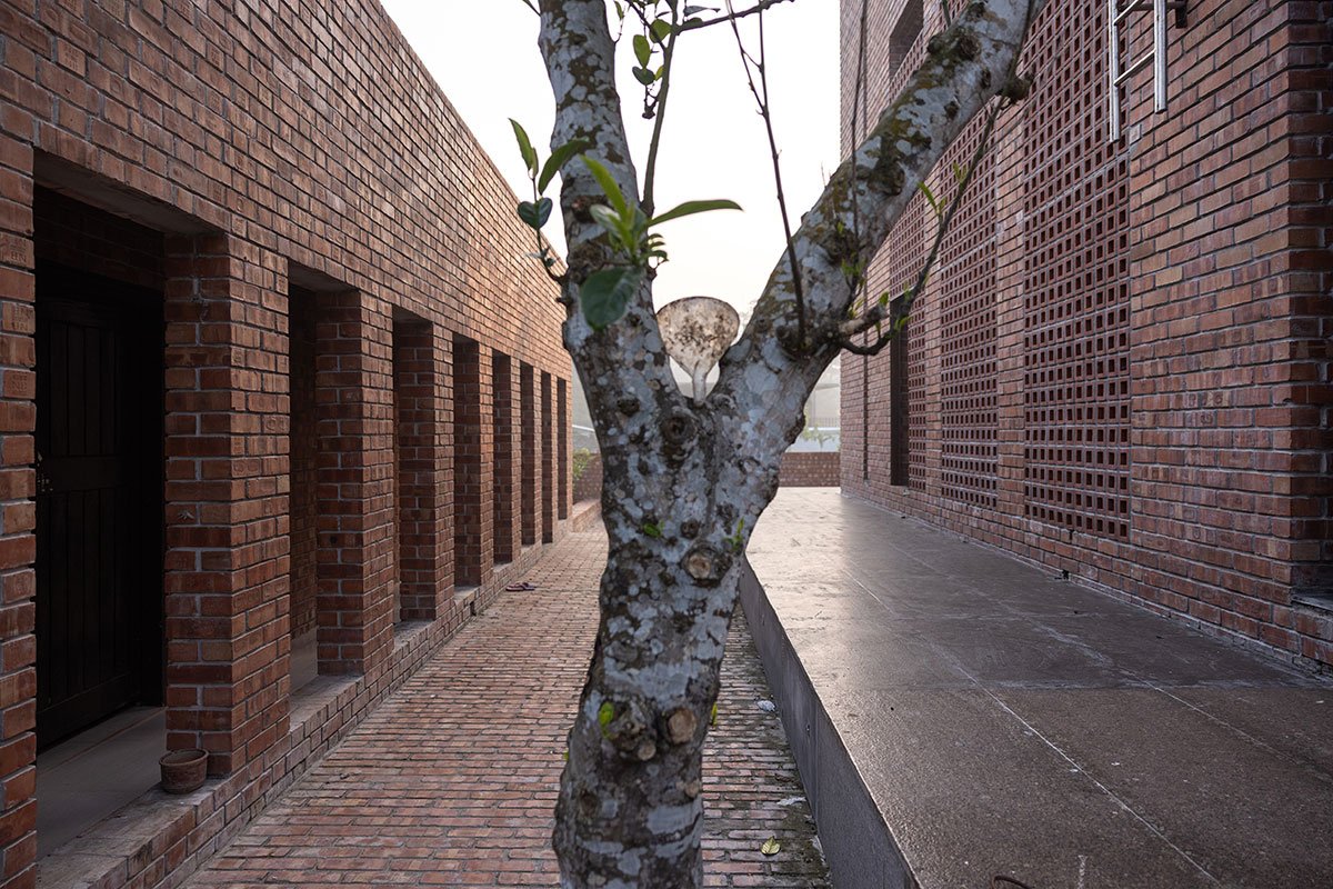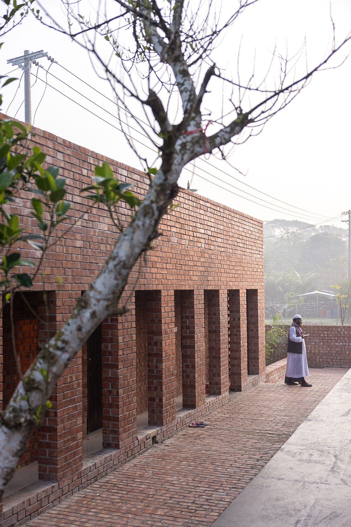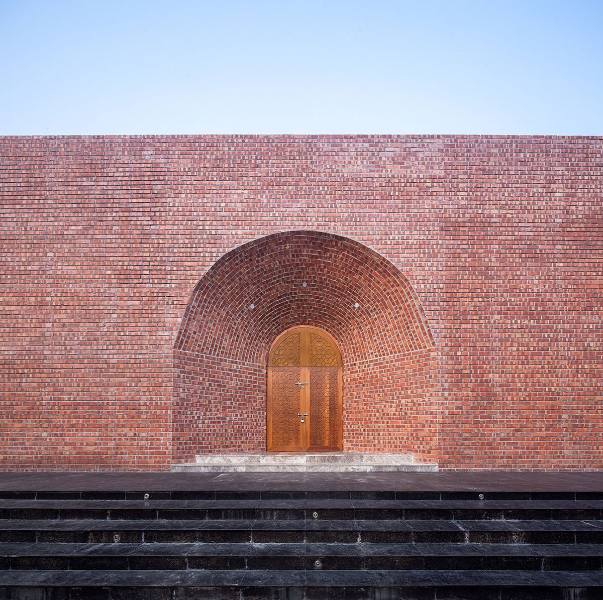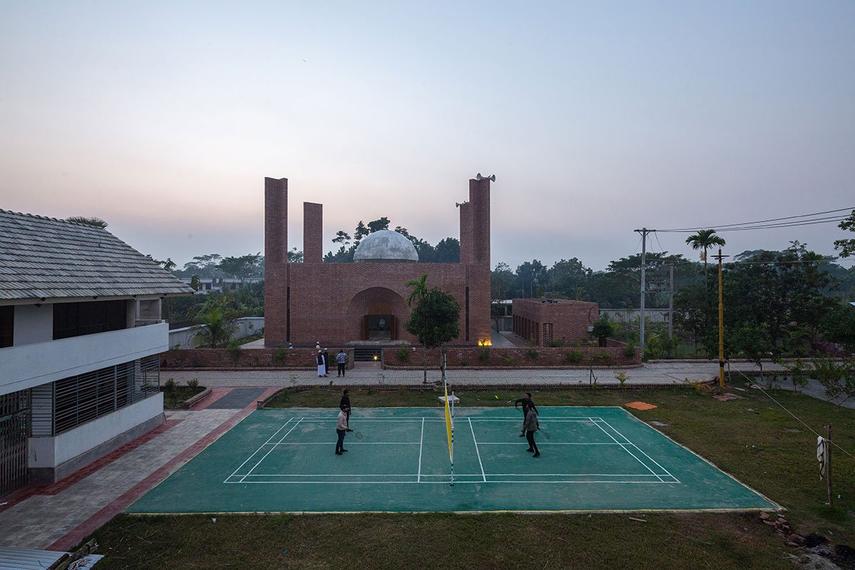 To achieve timeless materiality, red brick and stones are used which goes back a long way in Bangladeshi mosque heritage. The deep red of the brick brings about a mellow contrast to the surrounding greenery of the area. While brick makes the enclosure, floors and plinth are made of stone, mainly marble. The marble floors are porous and keep the floors cool even during the blistering summer heat waves.
