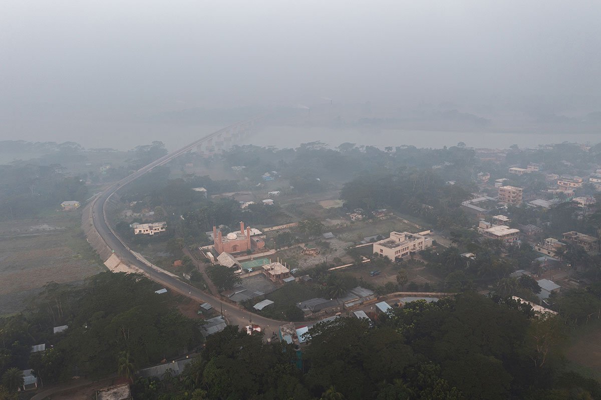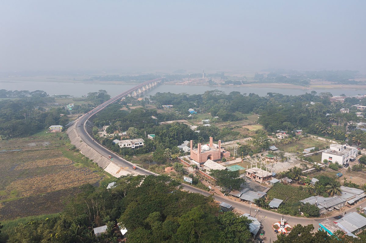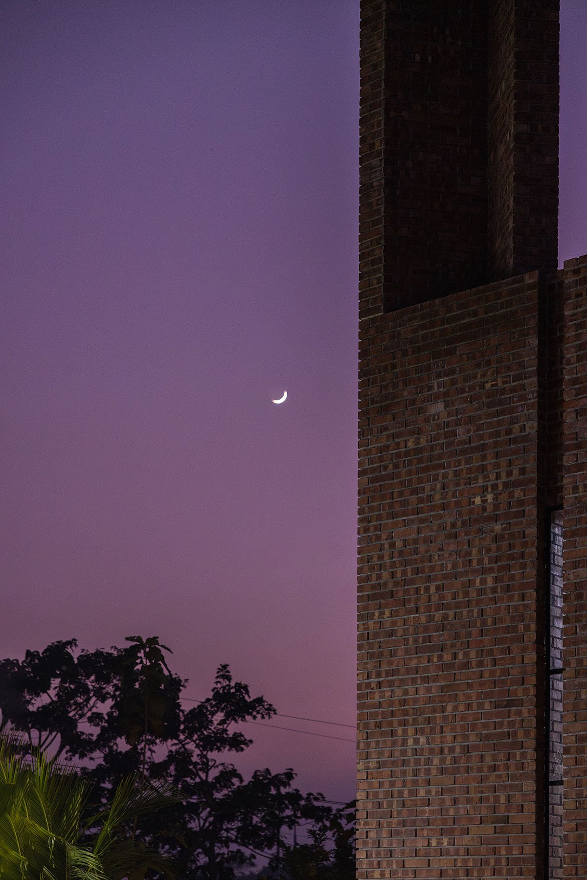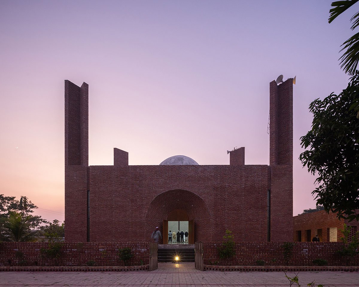 [Text as submitted by architect] Bait-Ur-Raiyan is a small scale mosque quietly sitting on a typical rural Bangladesh site near the mighty Arial Khan River. This particular design is an exercise of abstract interpretation of basic Symbolism of Islamic Architecture. Geometry has been the principal tool for this abstraction in terms of transforming both the form and spatial quality. A human centric approach has been adopted to create a space for community keeping the scale sacred yet intimate, using the local materials like red brick, while lights played the most vital role to uplift the spiritual entity of the mosque.