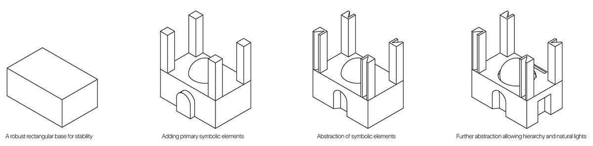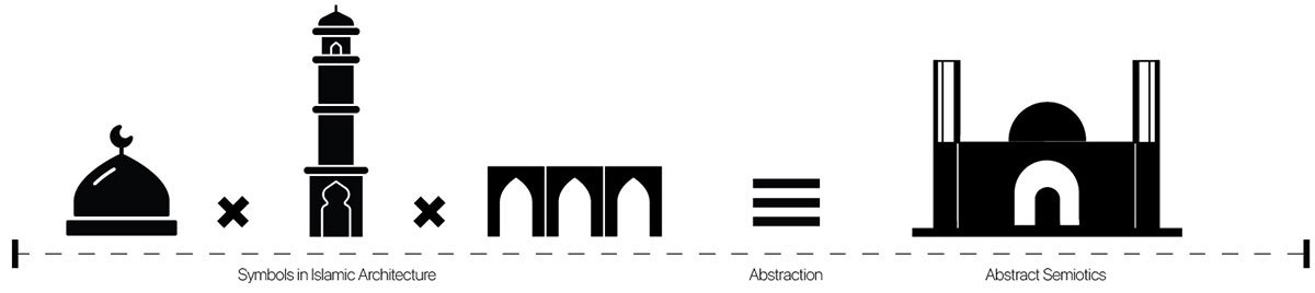 Symbolism through geometric interpretation is an imperative feature of Islamic art and architecture. Islam prescribes symbolic or suggestive approach rather than literal representation of any sort. This makes geometry one of the most vital tools in abstraction of symbolism in mosque design, which seeks its development through the philosophy and way of life. In this particular mosque, the project brief had the firm requirements of having the traditional symbolic elements of a mosque like the dome, minarets and arch. This imposed criterion was taken as rather an opportunity by the designers to exercise the abstraction of the traditional symbols in mosque architecture through the concept of “Abstract Semiotics”. This principle was applied in measurable mass and space, and other immeasurable aspects with a deeper perceptual level.