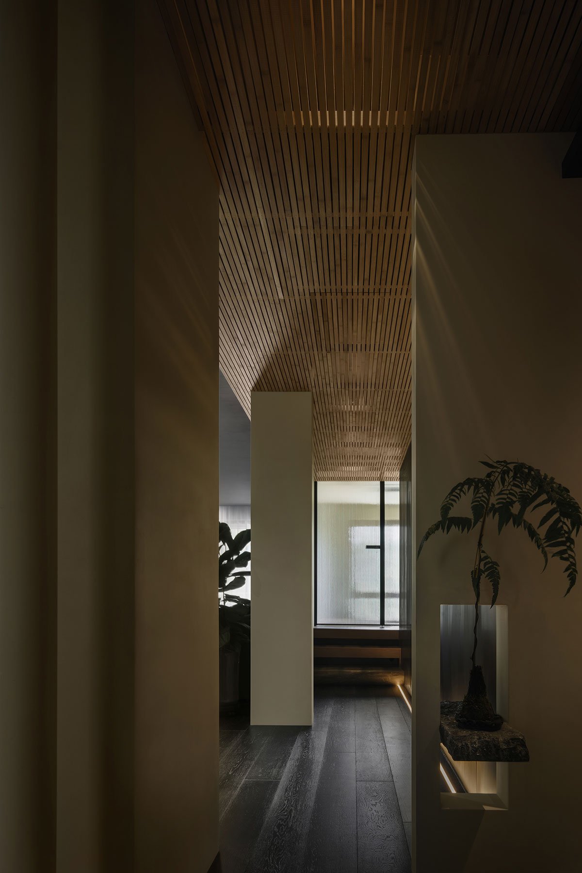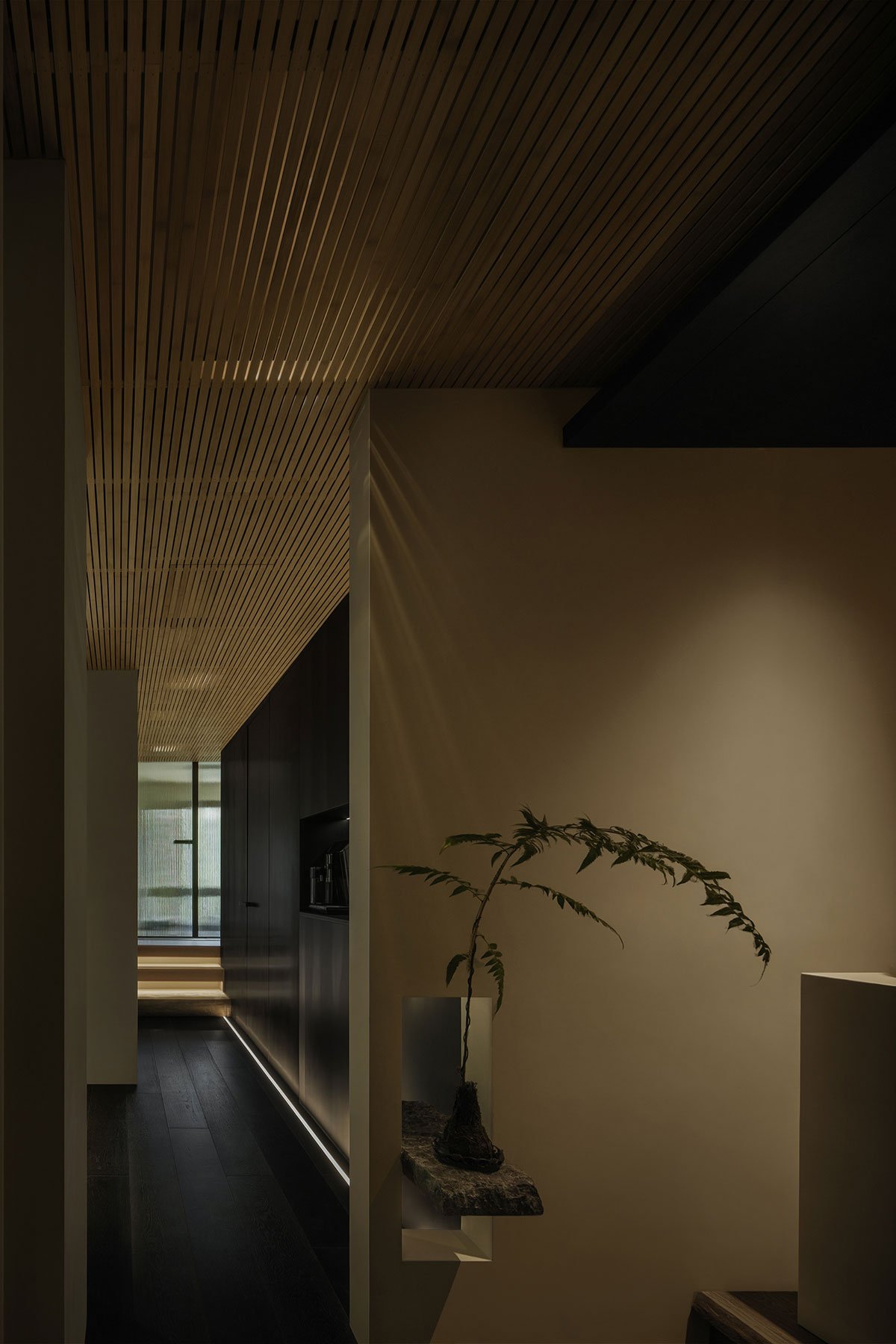 Excerpt: Bamboo Box by CUN Design is an interior design project that outlines the ideal lifestyle of living in seclusion accompanied by bamboo. This project explores new expressions of “wall mountains,” incorporating elements like space, light, shadow, and materials to express the designer’s yearning for nature and oriental philosophy. The residence aims to integrate living and wandering, nurturing both body and mind, allowing for a joyous experience in space.