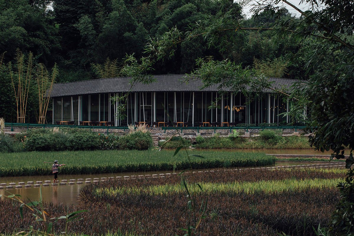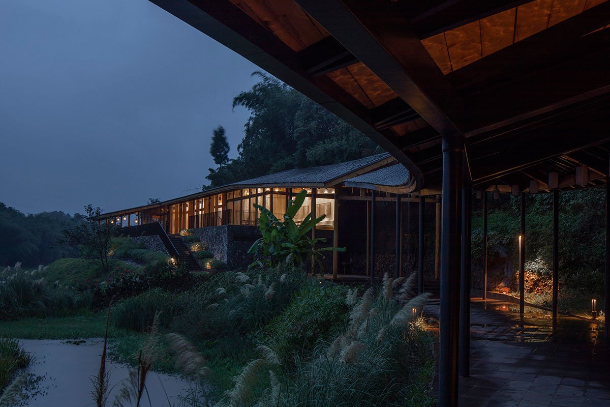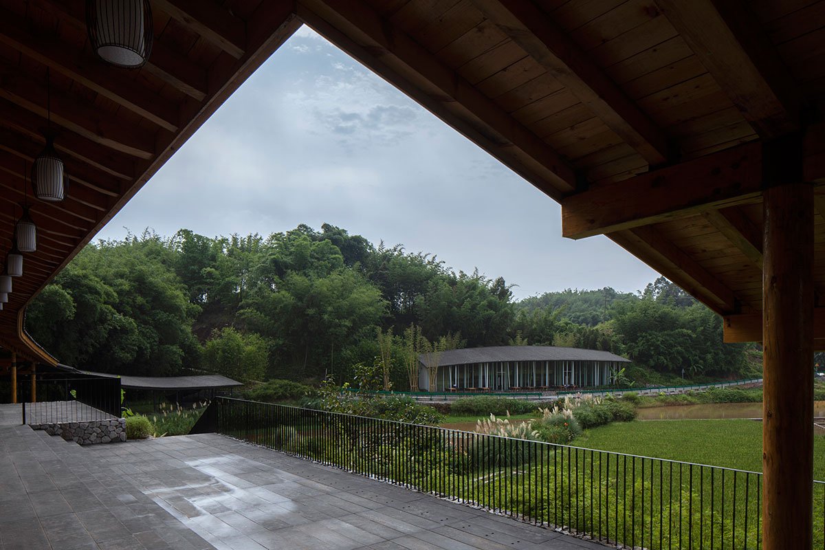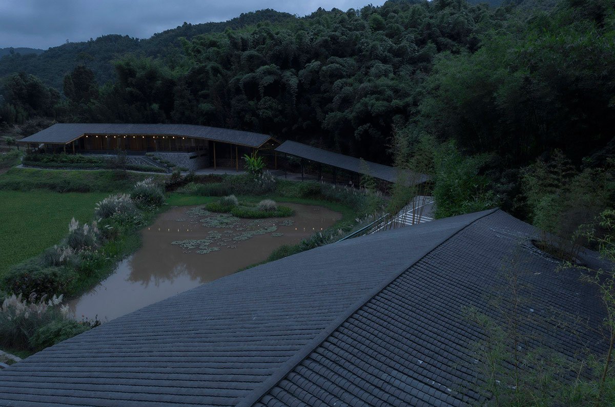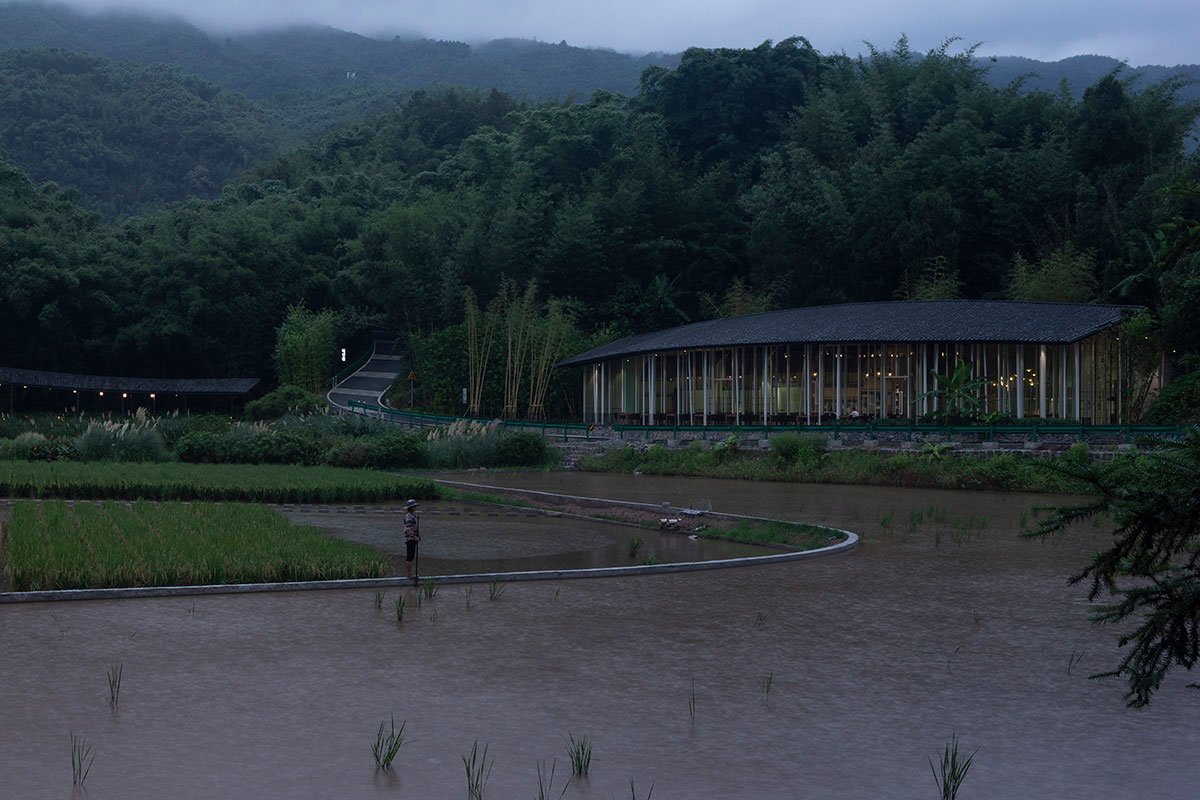 [Text as submitted by the architects] “Bamboo Branch Academy” is located in Yongjiang Village, Zhuhai Town, Changning County, Yibin, Sichuan Province, near the famous Shunan Bamboo Sea Scenic Area. The project, situated in a small village in Huangjuetan, Yongjiang Village, is surrounded by bamboo forests, paddy fields, vegetable fields, and hills. The Yujiang River is babbling in the west and the south, and Shunan Bamboo Sea in the north rolls like a large green screen.