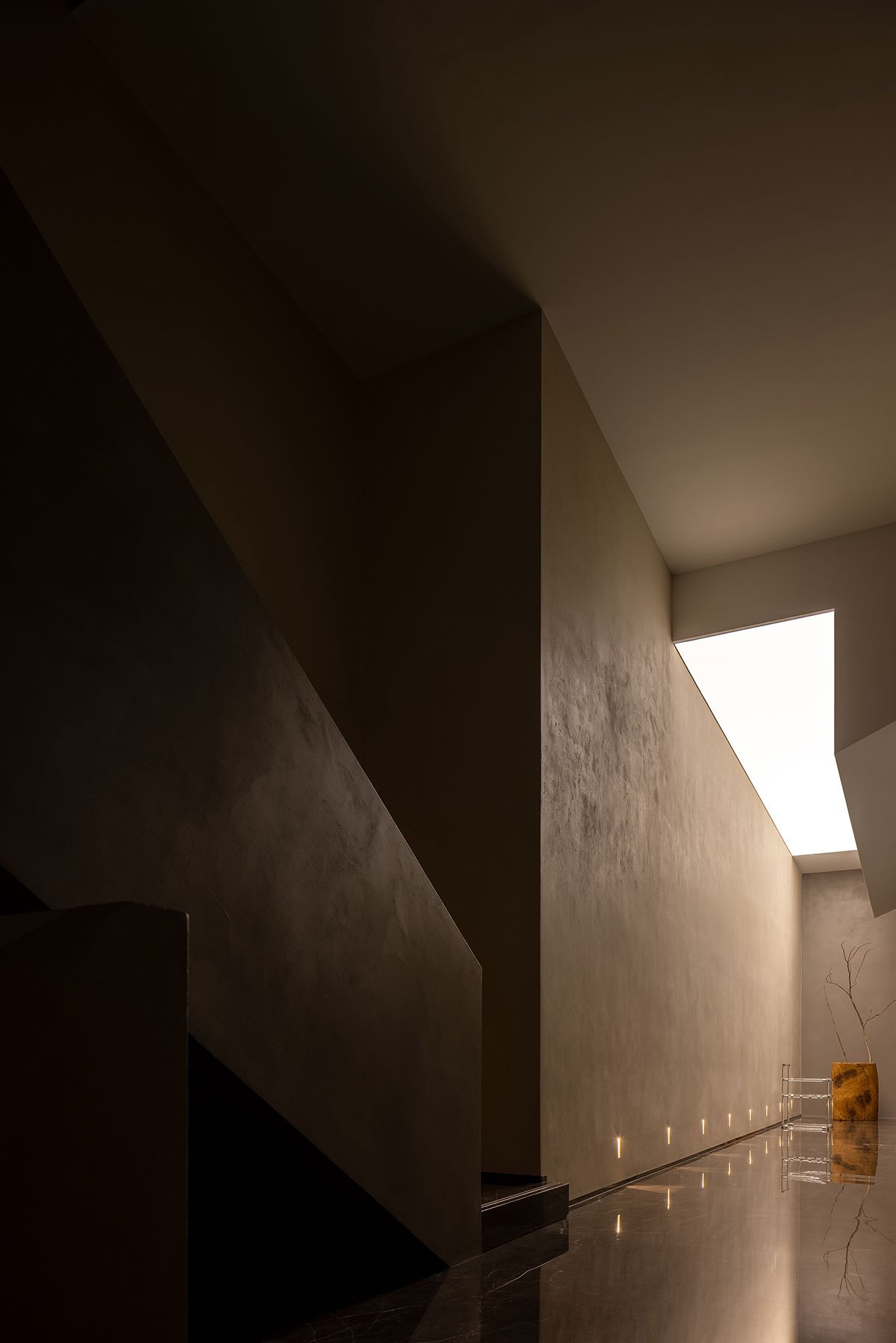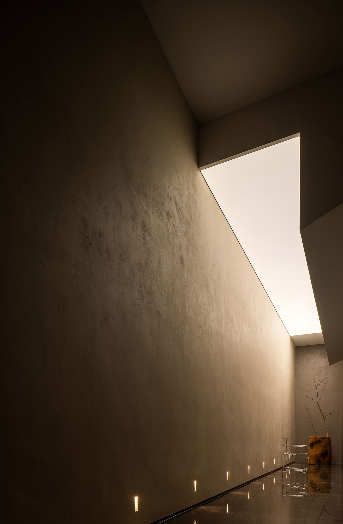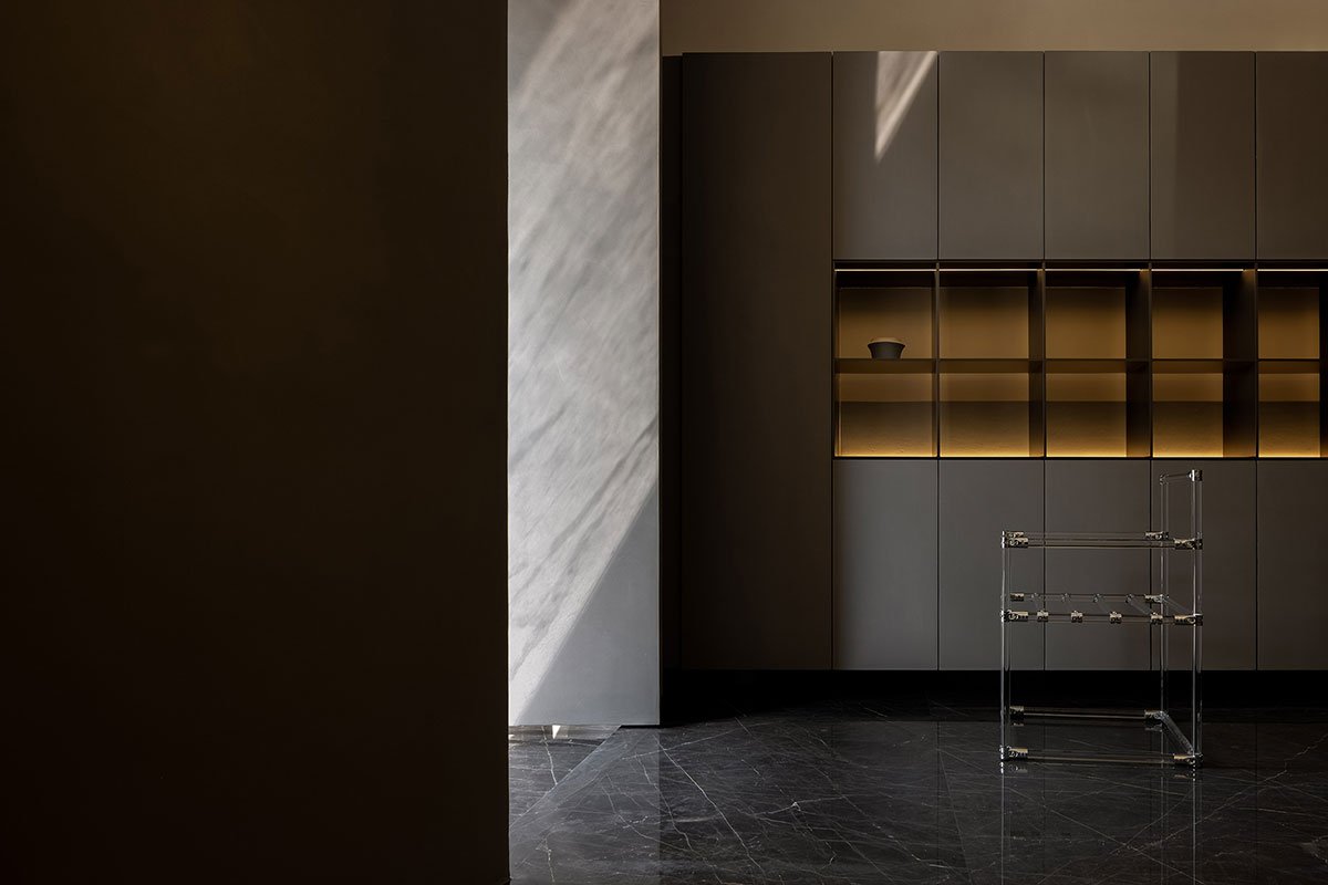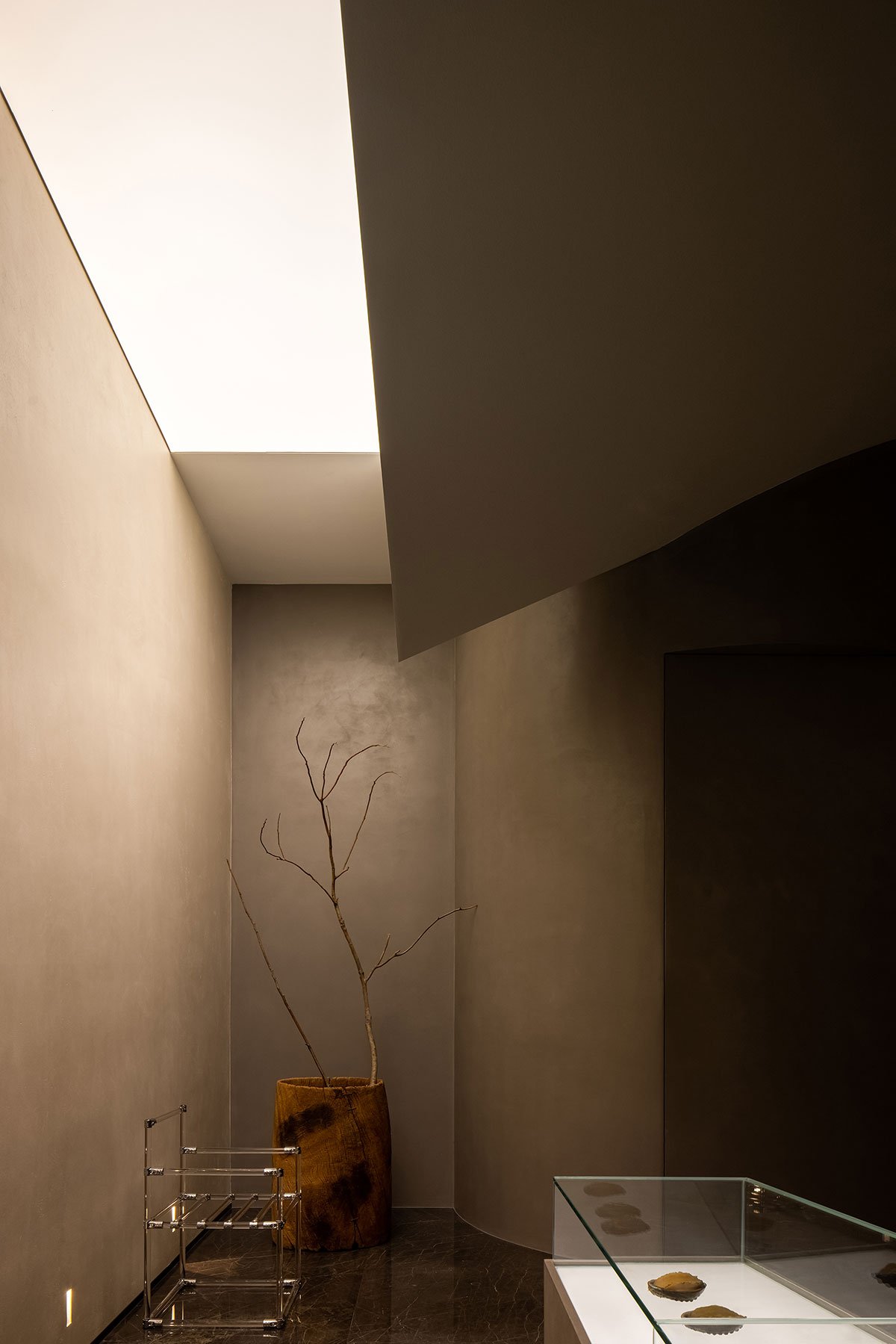 Objects shape the space and its spirit by the action of light. Light and objects are interdependent. The designers resorted to light to better outline the form of the space to subtly impact its mood, and thus to create a sense of self-consistent presence rather than being an independent system, let alone an abrupt opposition.