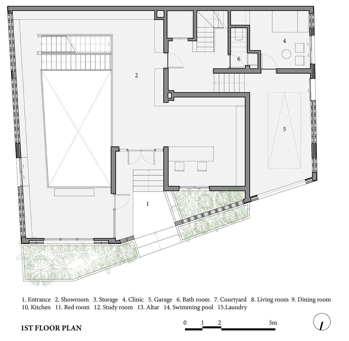 The brief of the project was to design a home for a seven-member family and a place for relative get-togethers. Besides its residential uses, Bat Trang House also functions as a shop, trading the traditional ceramic products of the pottery town.
