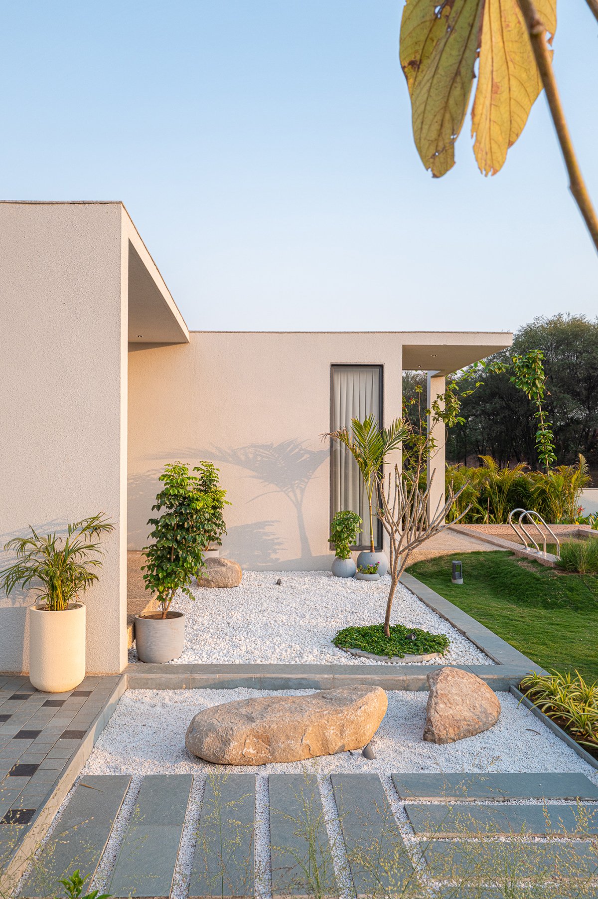 Orientation responds to sun paths and wind movement. The bedroom bay shields from harsh light yet opens the main bedroom to a pool deck and garden. The family bays are porous, creating a seamless transition between inside and out.