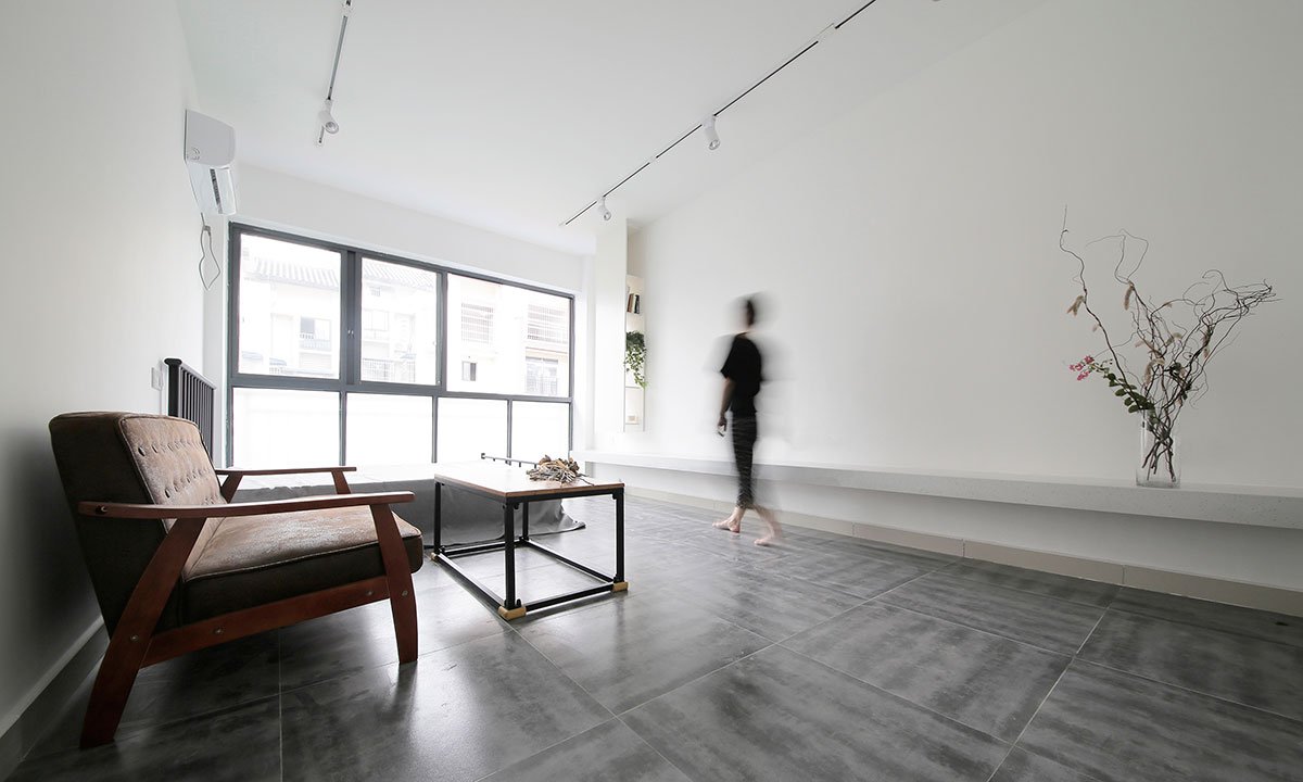 Excerpt: House in Chongqing is a residence designed by the interior design firm Jun Murata | JAM in a suburb of Chongqing, China. This functional and efficient apartment design uses white spaces to create harmony with all the old furniture owned by the client. A living room, a bedroom, kitchen, sanitary and storage are planned in a small space of 33 square meters. It had to be arranged functionally and efficiently. Soft natural light enters through the frosted glass and the sheer curtain. Ceilings and walls are painted with matte white to maximize light from the opening.