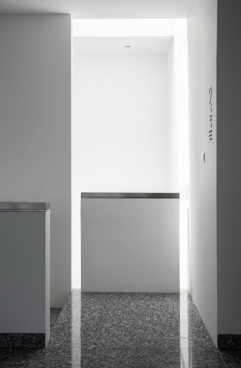 Beyond the narrative, the fins simultaneously serve to cut out direct solar penetration all year round, their depth precisely calculated to shade adjacent glazing panels, thus reducing heat gain and mitigating higher air-conditioning output. In addition to this a garden was also introduced to bring natural shades to large glazed surfaces at the East side of the building. Large Bucida trees will become a buffer against the mid-morning sun when fully matured, on top of bringing a much-needed biophilic element to an otherwise dry environment. The warehouse is equally naturally lit and naturally ventilated to ensure optimum comfort to working staff while maintaining the energy consumption to an absolute minimum. The simplicity yet compelling attitude to the complexity of the design brief is a statement of the architect in contradistinction to the ‘artificial complexity’ that riddles contemporary architecture, inessential and excessive. In response to this, Gibert&Tan by creating a simple building form, paid more attention to refining details and to using better quality material aiming to a ‘natural complexity’ instead (the terms ‘artificial complexity’ and ‘natural complexity’ refer to Michael Hutson, 2021).