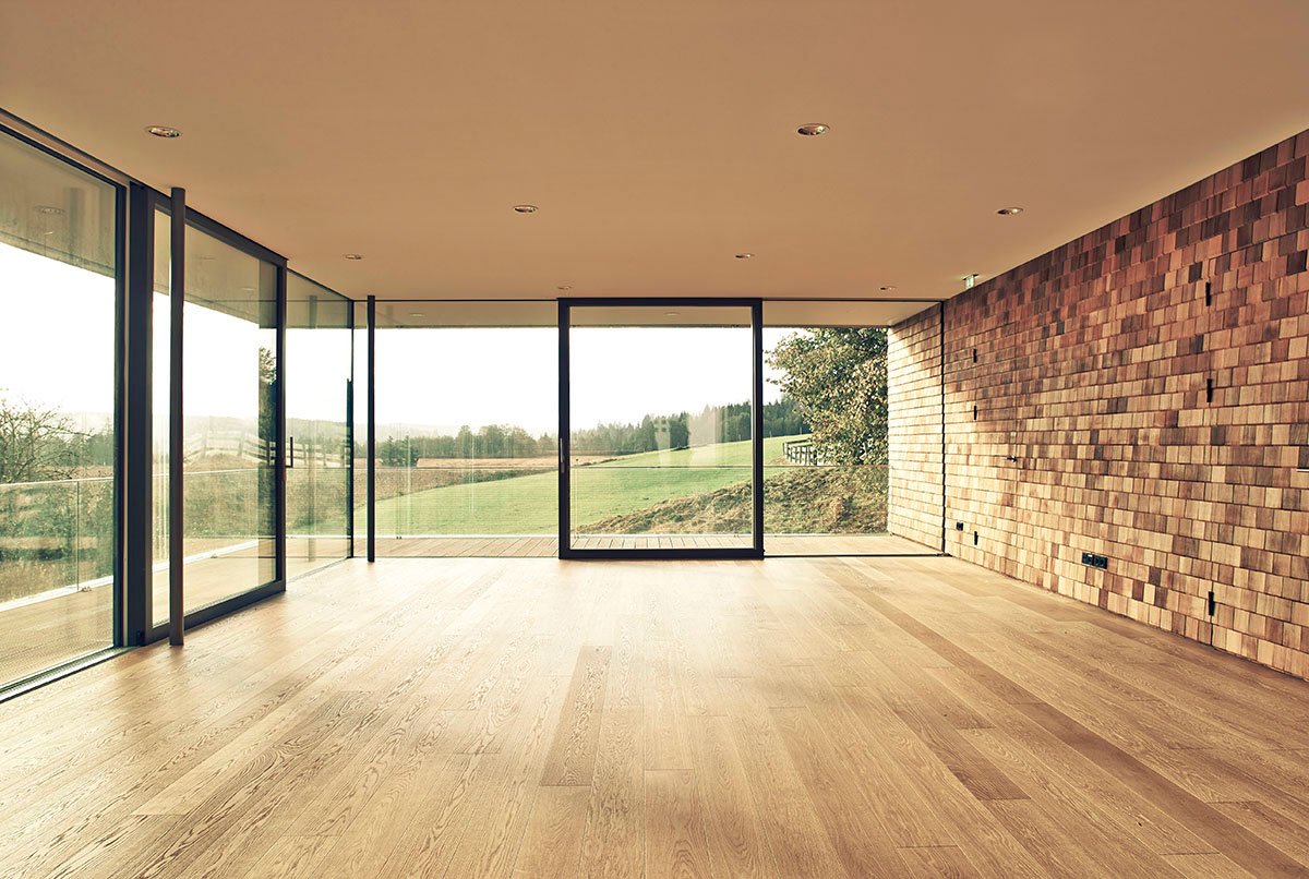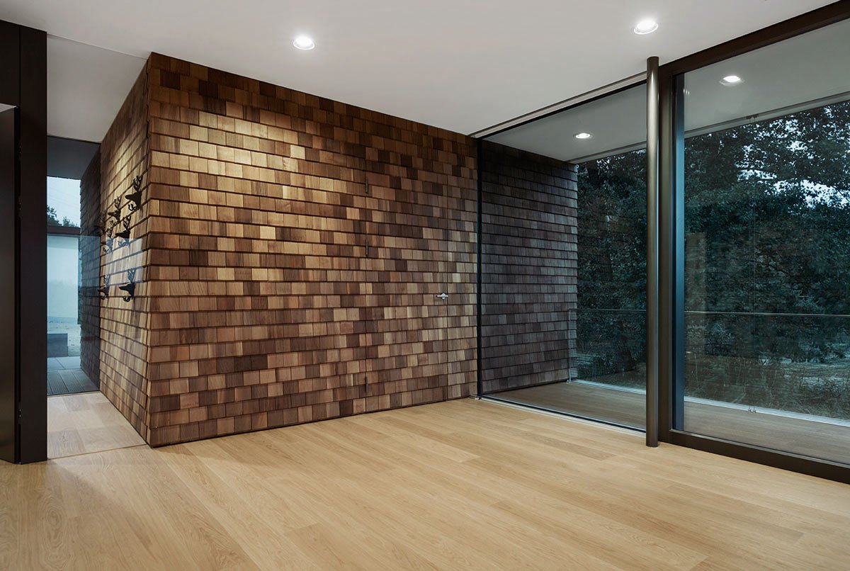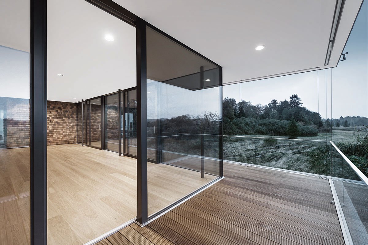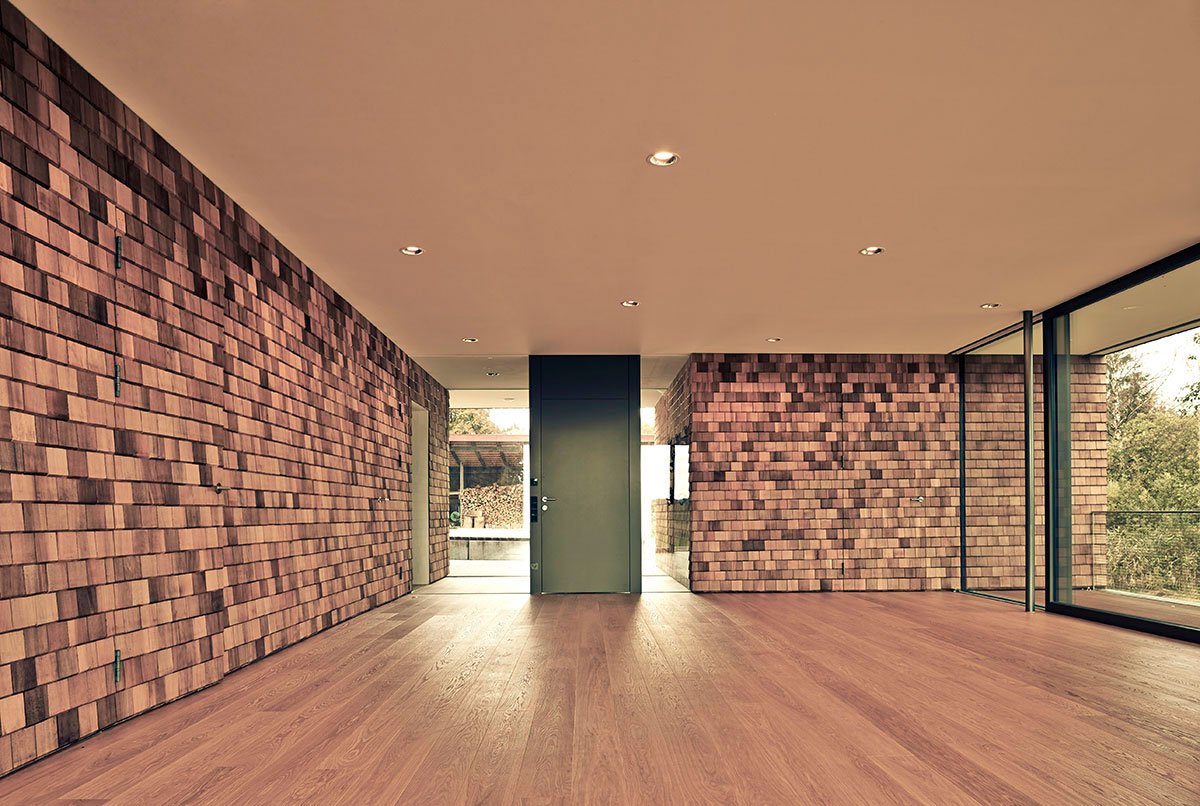 Two of five proposed variants were detailed as photorealistic visualizations, of which the variant of the wooden shingle cube with a huge panoramic window was now executed. The new building consists essentially of a large community room with a sensational view of the nature reserve.