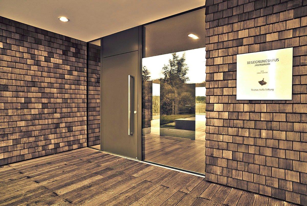 Excerpt: Begegnungshaus Jagersbrunn is an architectural project designed by Terrabiota in Germany. They proposed to create a bold and modern replacement building in wood to complement the tranquil main house. The new building consists essentially of a large community room with a sensational view of the natural reserve.