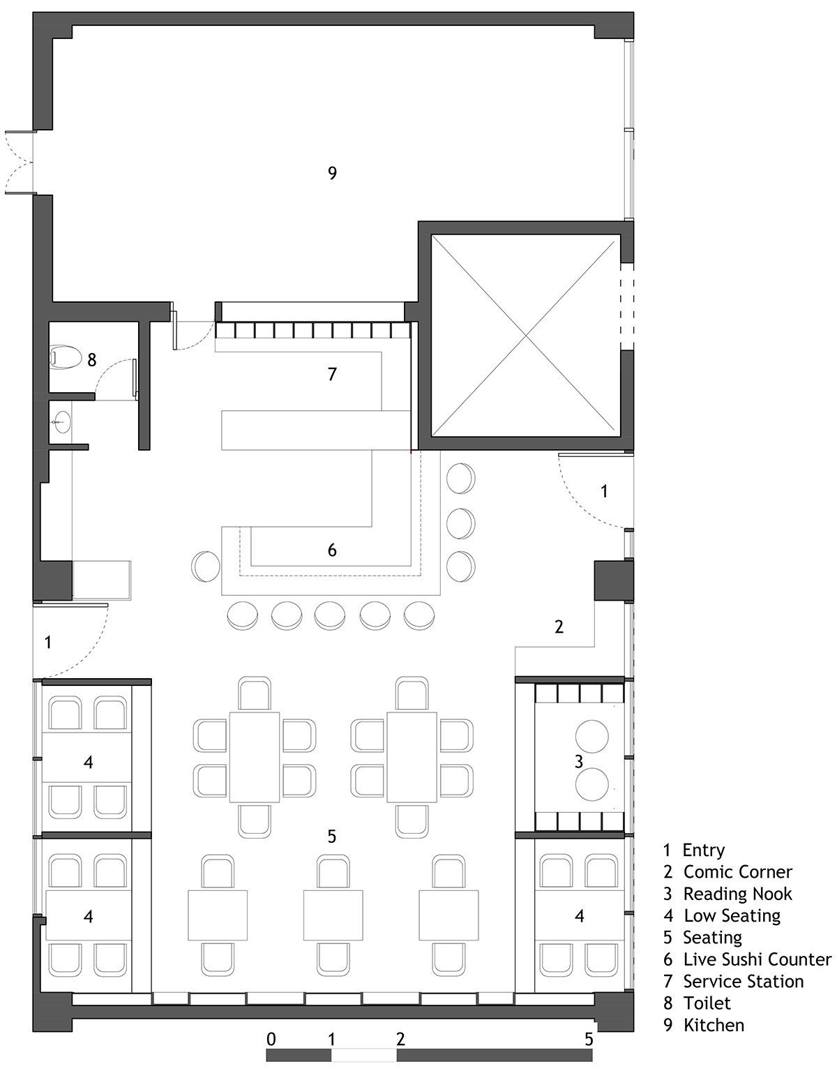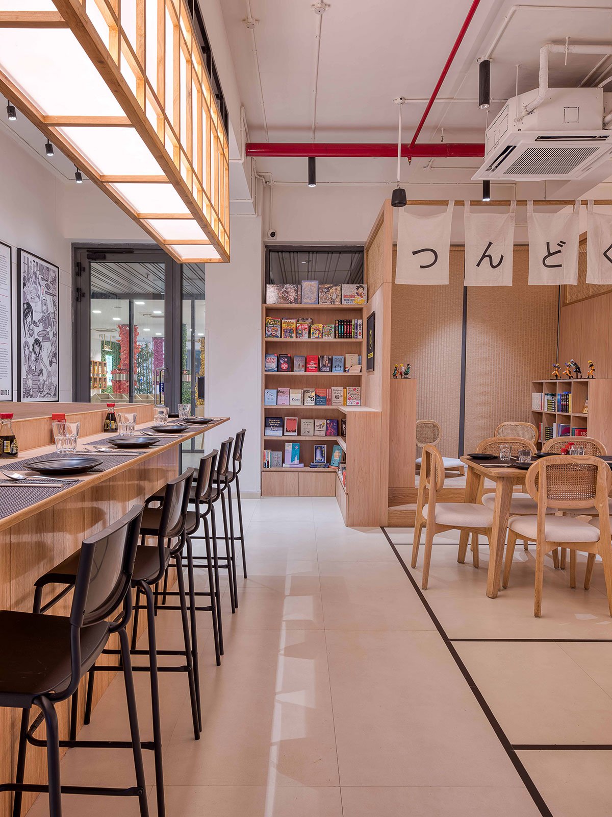 Excerpt: Bento B by Vaissnavi Shukl is an interior design project that seamlessly combines Japanese cuisine and literature with cultural nuances. The design features shoji panels, a sushi counter, and low-seating nooks, while Norens with calligraphy capture its essence. The space also features a dedicated reading nook with manga and Japanese authors’ books, transforming it into a literary hub.