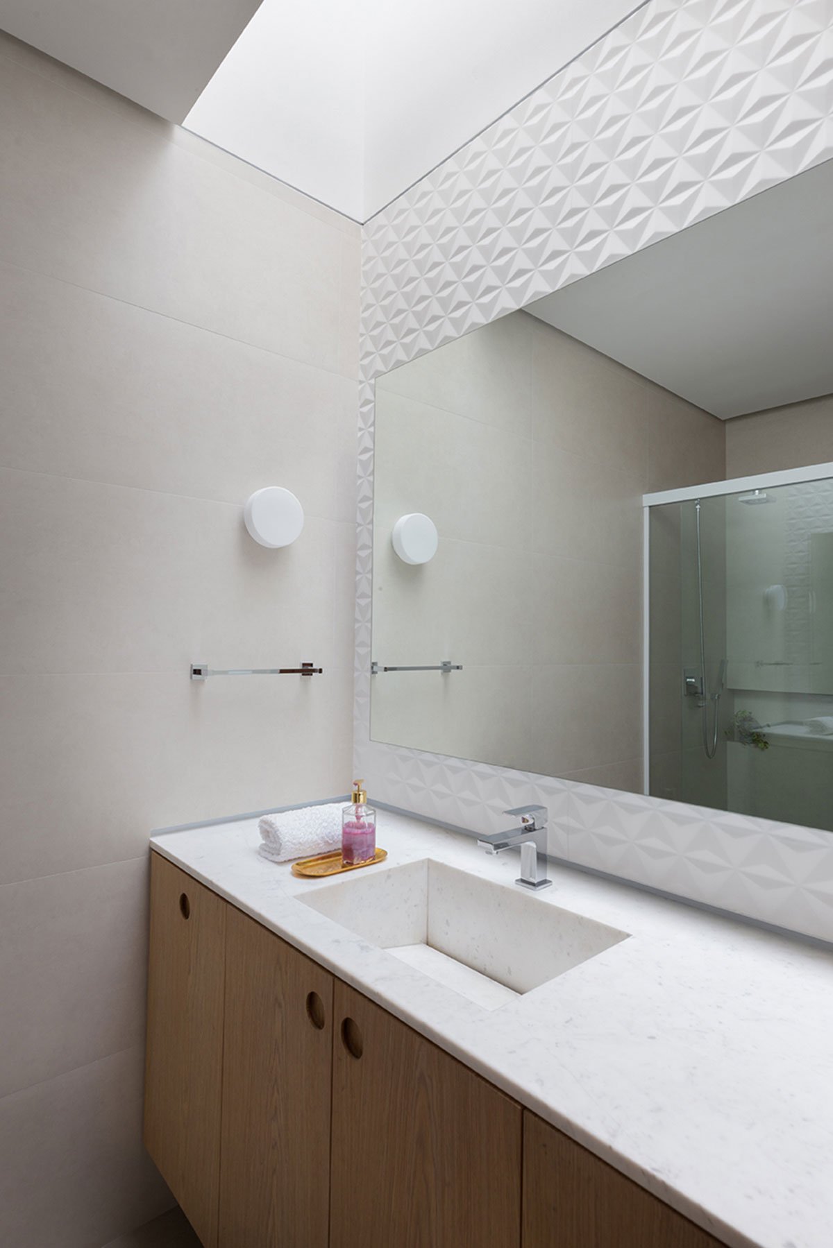 The materials are sincere and unadorned. Steel, wood, and concrete are shown as they are and the natural wear of each of them serves as a very welcome testimony to the concept adopted. From the public street, the Bento house is shy and discreet. The folded metal sheet of the upper floor and the gate creates a visual barrier so that, after crossing it, the visitor can perceive that the ground floor is integrated with the garden and represents an oasis in the midst of the urban fabric of São Paulo.
