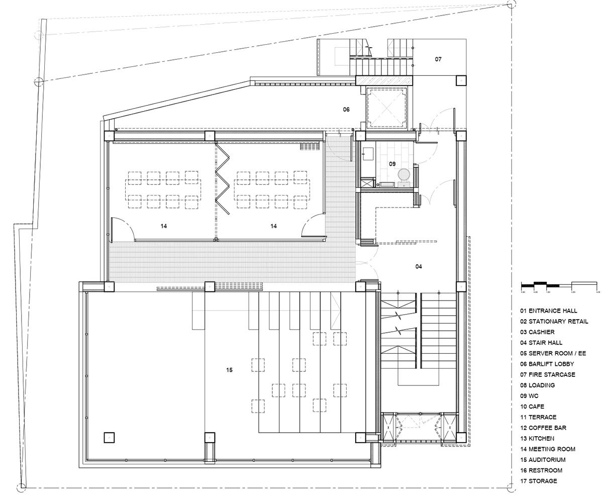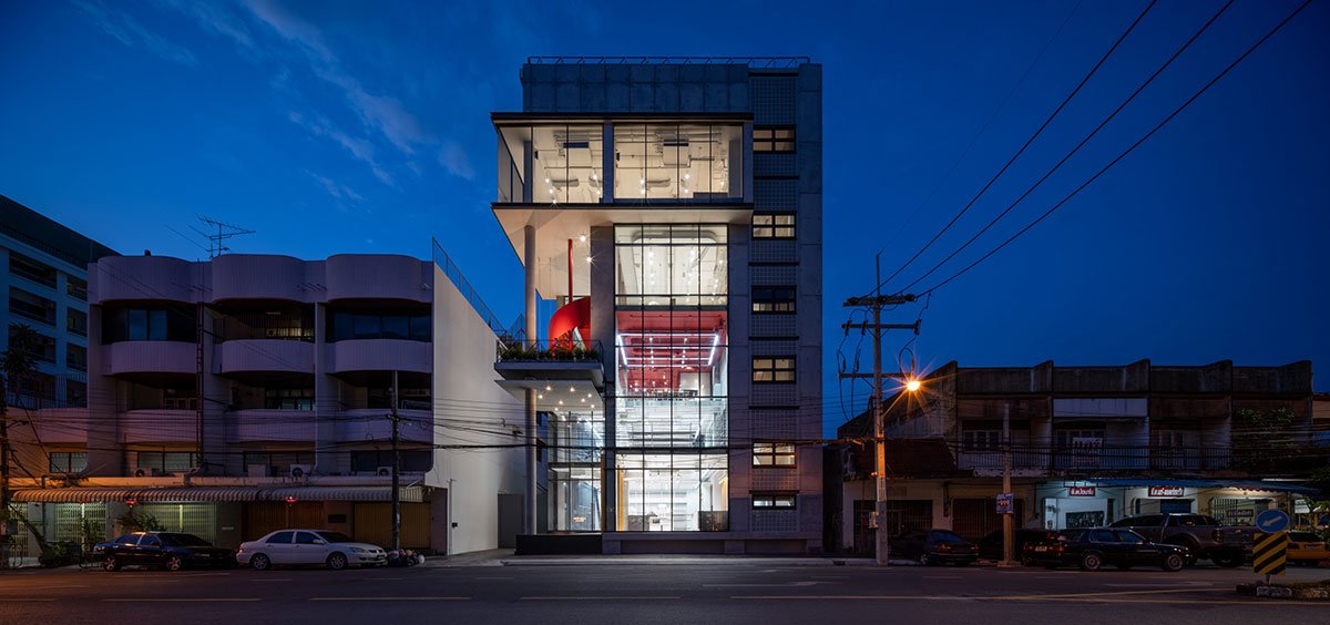 [Text as submitted by architect] It is a 6-storey building with a total use area of 1,000 sq.m.. The building is programmed to be a one-stop service. It’s a combination of retail, cafe, co-working space and meeting room together in one building. Due to site limitation, functions are designed to stack vertically spreading area usage, but those functions are designed to overlap intentionally, loosely creating an internal vertically space connected, the 1st and 2nd floor are stationary retail, the 3rd and 4th floors are cafe and co-working space, while the 5th floor are meeting room and auditorium.