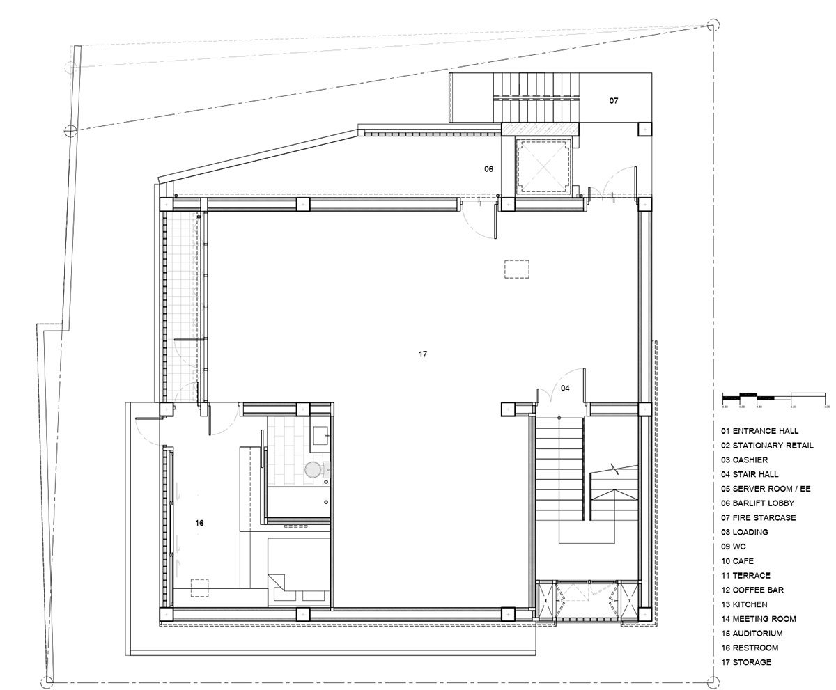 The storage room and office are pushed up onto the 6th floor. The interior space proposal is reflected in the form of external architecture, conceptually revealing the activities of the whole building simultaneously from outside. The facade is exposed to work as a window display of the building and the section where different activities are happening together. The space overlaps inside, causing the mass of the buildings that interlock each other, creating uniqueness from the neighbouring buildings.