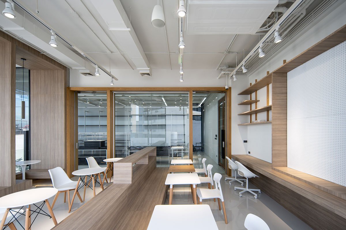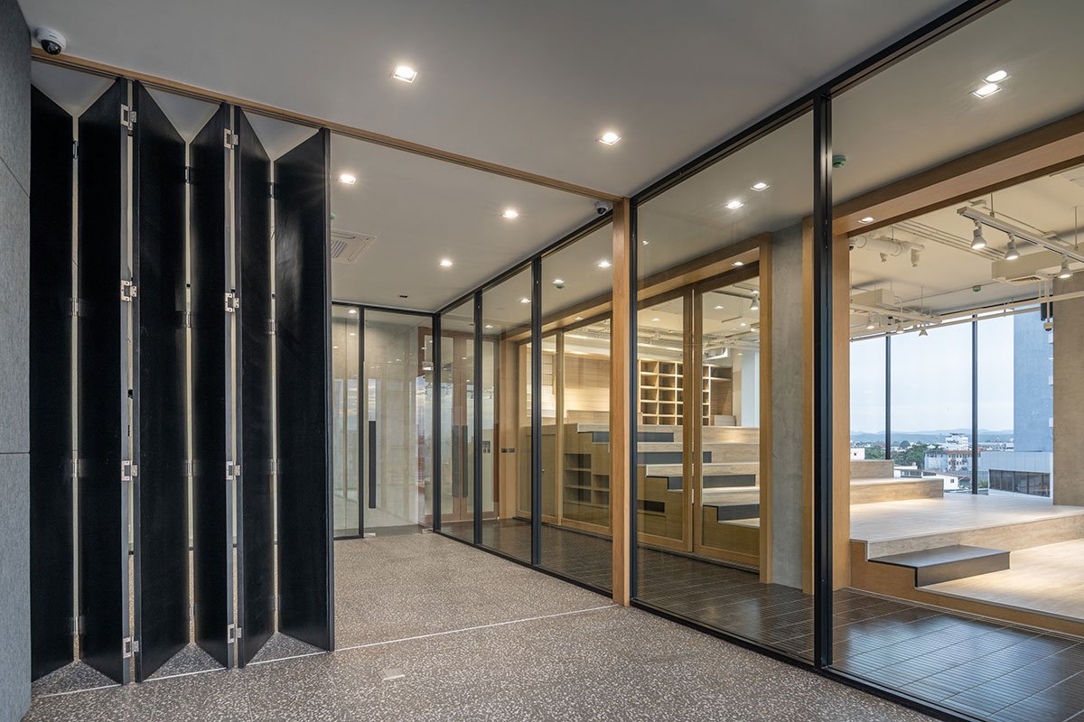 The opening of the 3rd floor into an outdoor area and the floating plants in the middle of the building make the building look clearlier and airier in a narrow and limited space which is the main purpose of the building design. The material selection of the building emphasizes on showing the material naturally to reduce the cost of maintenance (low maintenance).