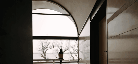 When people Stroll along the promenade, the corridor is a place for relaxation and a coffee and book bar. Like a long scroll, the horizontal space and the arching roof take in the riverbank scenery one by one, with the morning light and sunset and the viewing bridge extending into the water. Corbusier’s “Mother’s House” is the ending at the end of the space. The similar overlooking bay window, river, lake and sea, and the overflowing light and shadow are intertwined in time and space at this moment, and the shimmering water surface brings up the warmth of mother and home in memory.