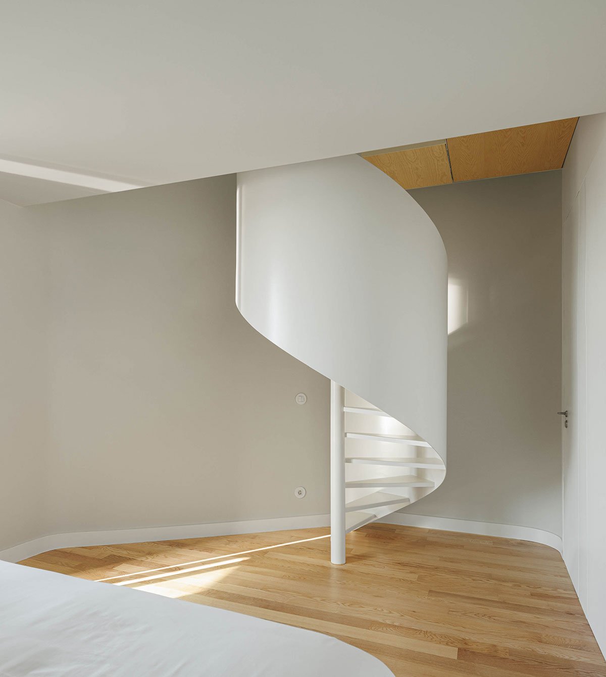 [Text as submitted by architect] The clients’ intention was to create a residential building with studio and one-bedroom apartments. With only 88 m2, a frontage of 5.50 m facing the street and 2.00 m wide on the rear elevation, the plot is characterized by its small size and peculiar configuration. Considering the typology of the plot, the architects inserted the stairwell in the central area of the volume, freeing up the façades and thus optimizing the capture of natural light inside the apartments. A recurring distribution logic in this type of plot in oPorto city.