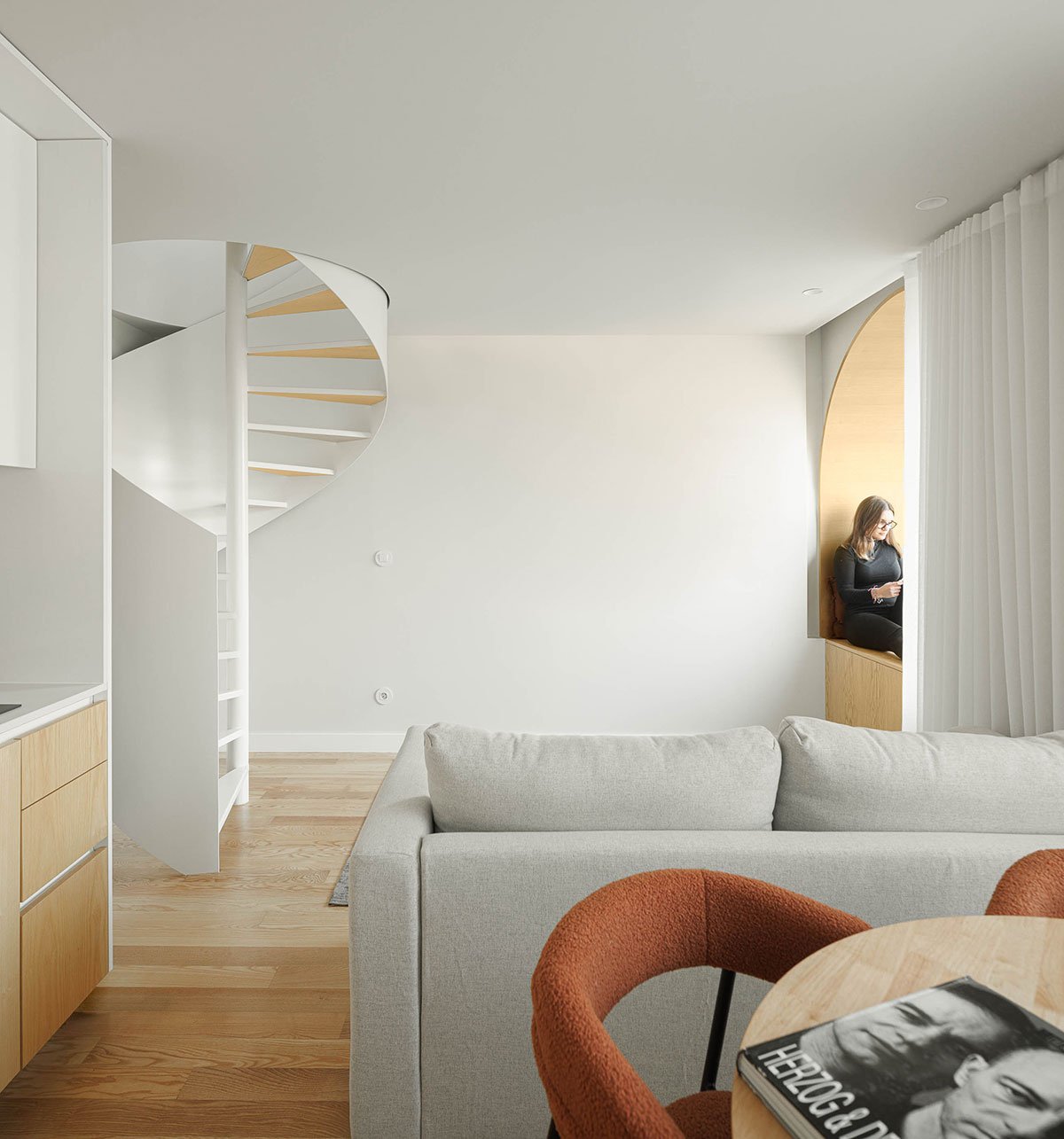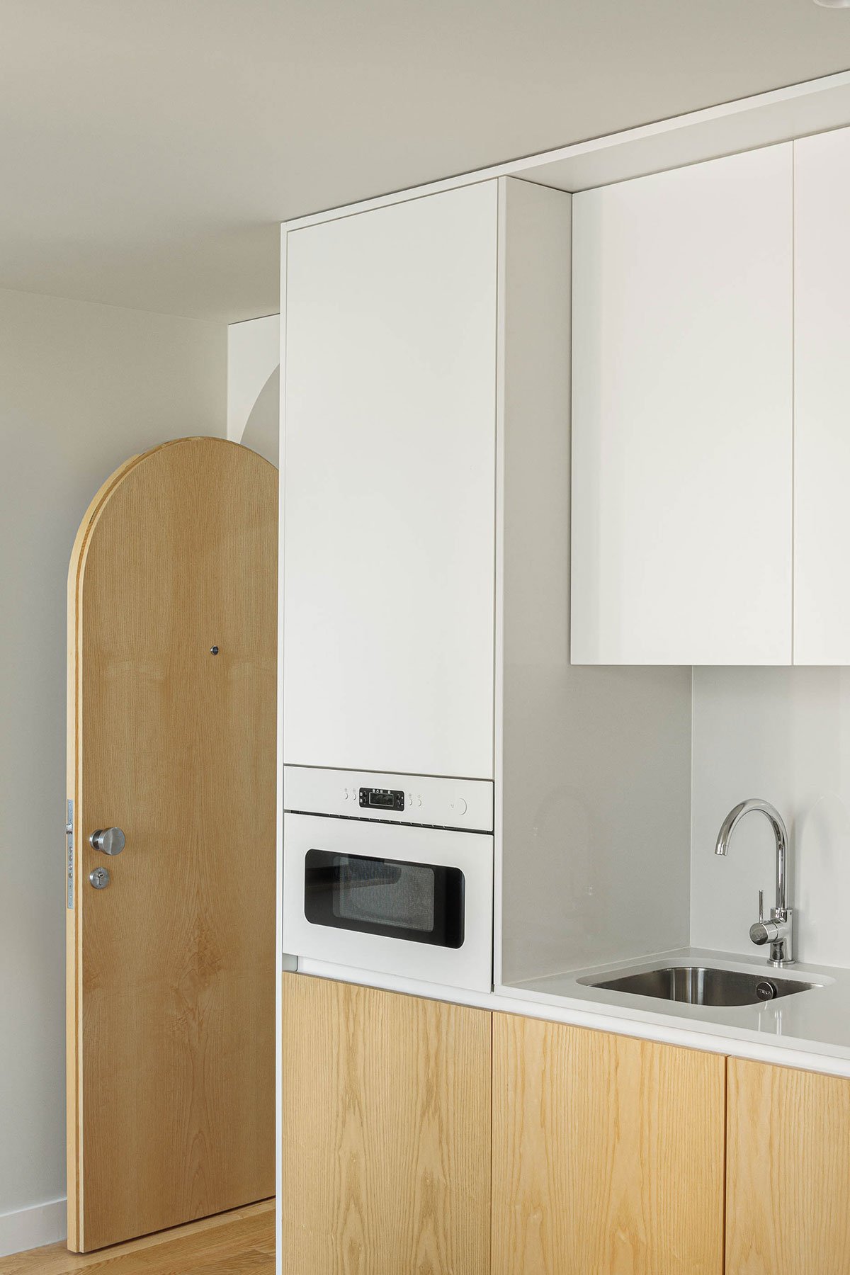 Considering the small size of the apartments, and in order to guarantee a feeling of greater spatial amplitude, the architects opened up the elevations completely, intertwining the openings in elegant concrete arches that draw the façade together and give it a strong personality.