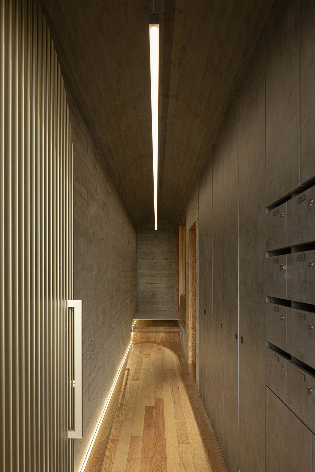 In order to make the most of the land, the architects created a complex typology of simplexes and duplexes from the second floor up, and integrated a small commercial space on the first floor, enhanced by a patio on the rear elevation.