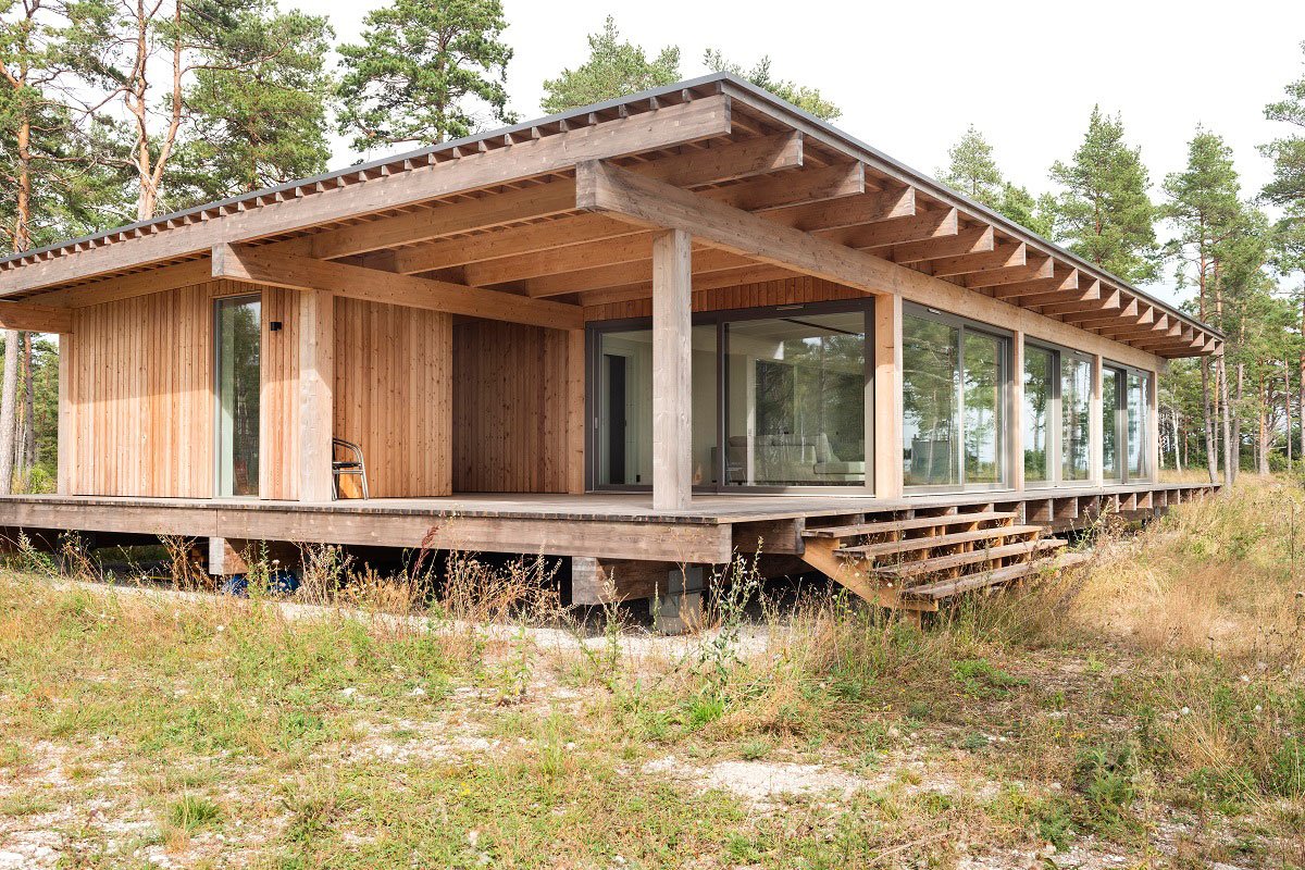 Boge friggars is a small area with 5 summer houses on the island of Gotland. The solid wooden houses are situated by the shore of the Baltic sea. The exposed wooden construction and large windows floats above, reflects and blends into the rough and untouched landscape