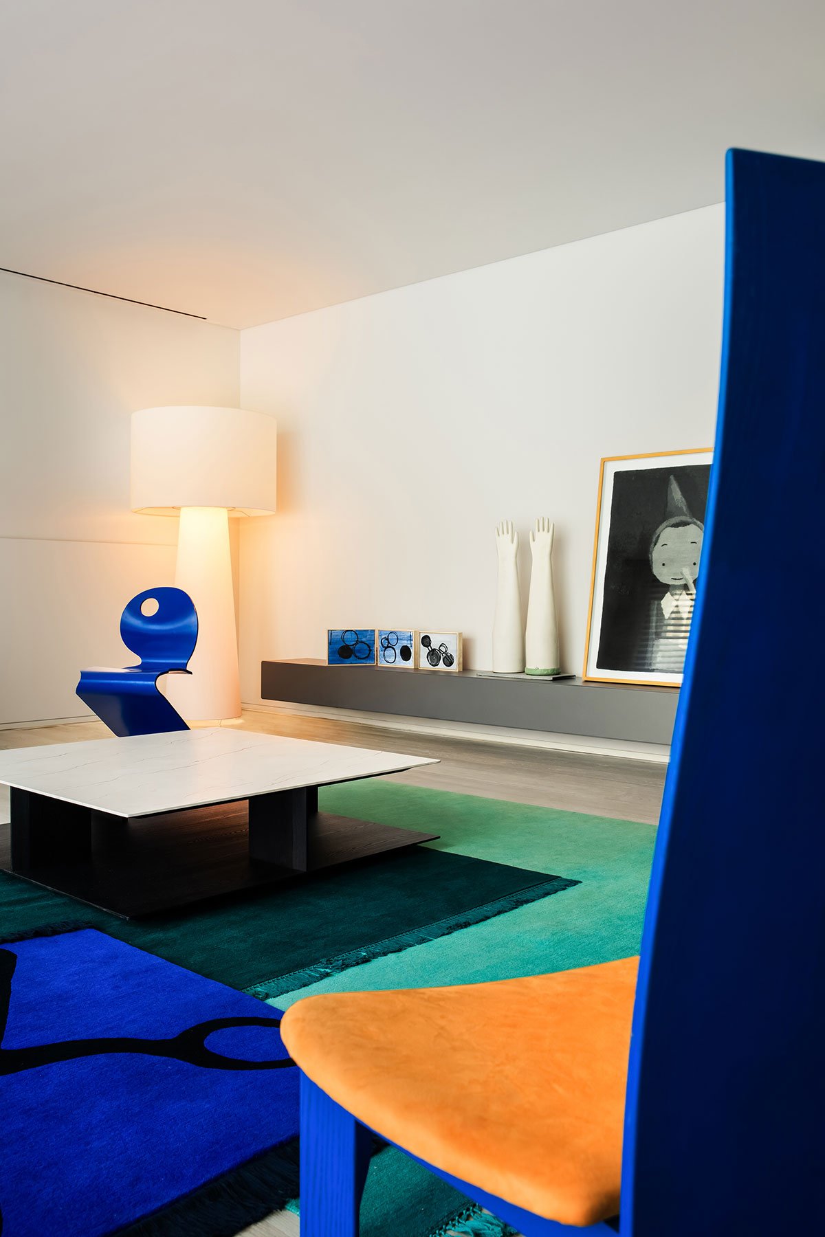 The bar space, in an unexpected turn, embraces a design vocabulary primarily comprising soft and futuristic curves, starkly diverging from the overarching design language. This configuration, resembling a spacecraft materializing within the home, invites an ethereal experience. Ascending the stairs, settling in evokes the sensation of voyaging through tranquil space, disengaged from the conventional reality, experiencing a weightless detachment.