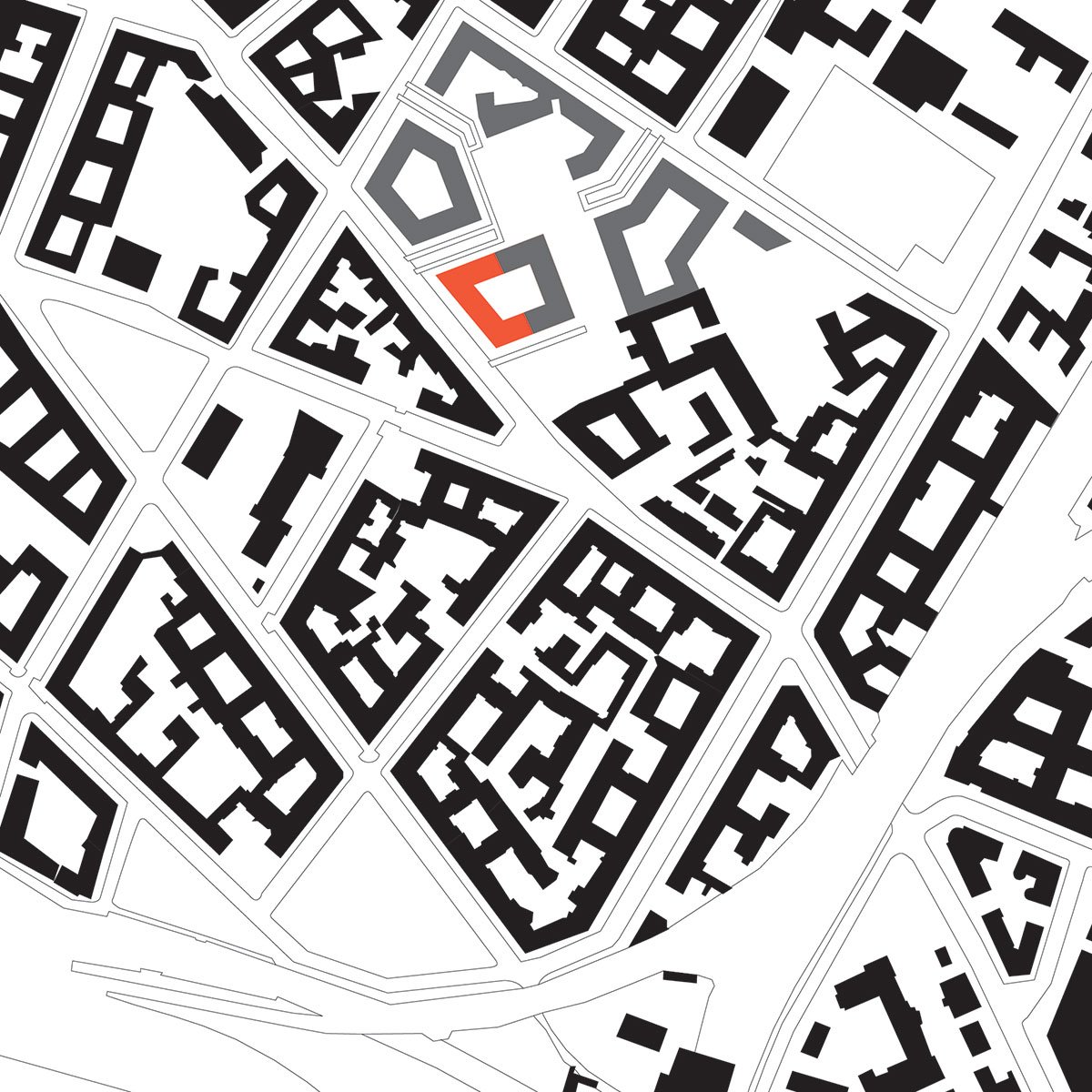 The block B is mixed use with office retail or practice areas (component BY, Boxhagener Strasse 79, 80, 80A) and with residential areas (component BZ, Boxhagener Strasse 79A, Siegfried-Hirschmann-Park 6-9 in cooperation with Bonnani Architekten), which corresponds to the metropolitan character of the surroundings.