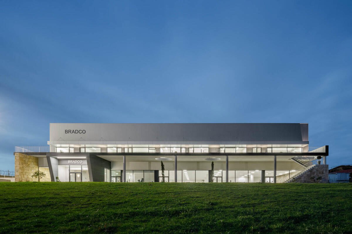 As requested, from the beginning by the customer, the intention was not to link the image of the Industrial Unit to a mere “warehouse”, but rather an architectural landmark that would represent the brand in the best possible way in the municipality. In the elevation facing north, since it does not have any type of opening and the main entrance to the building is on the opposite side (south), a more dynamic and more representative elevation of the “BRADCO” brand was chosen. So it works as a showcase for those who pass by. Also used was the characteristic stone of the region (granite) to cover some sections of façades.