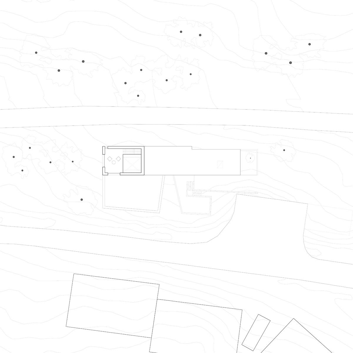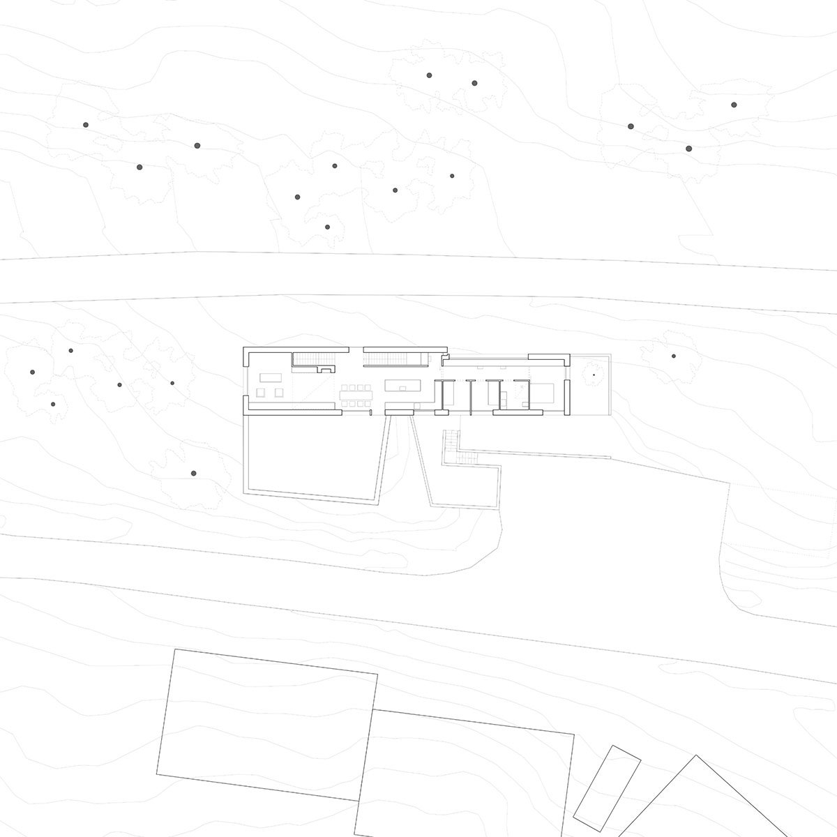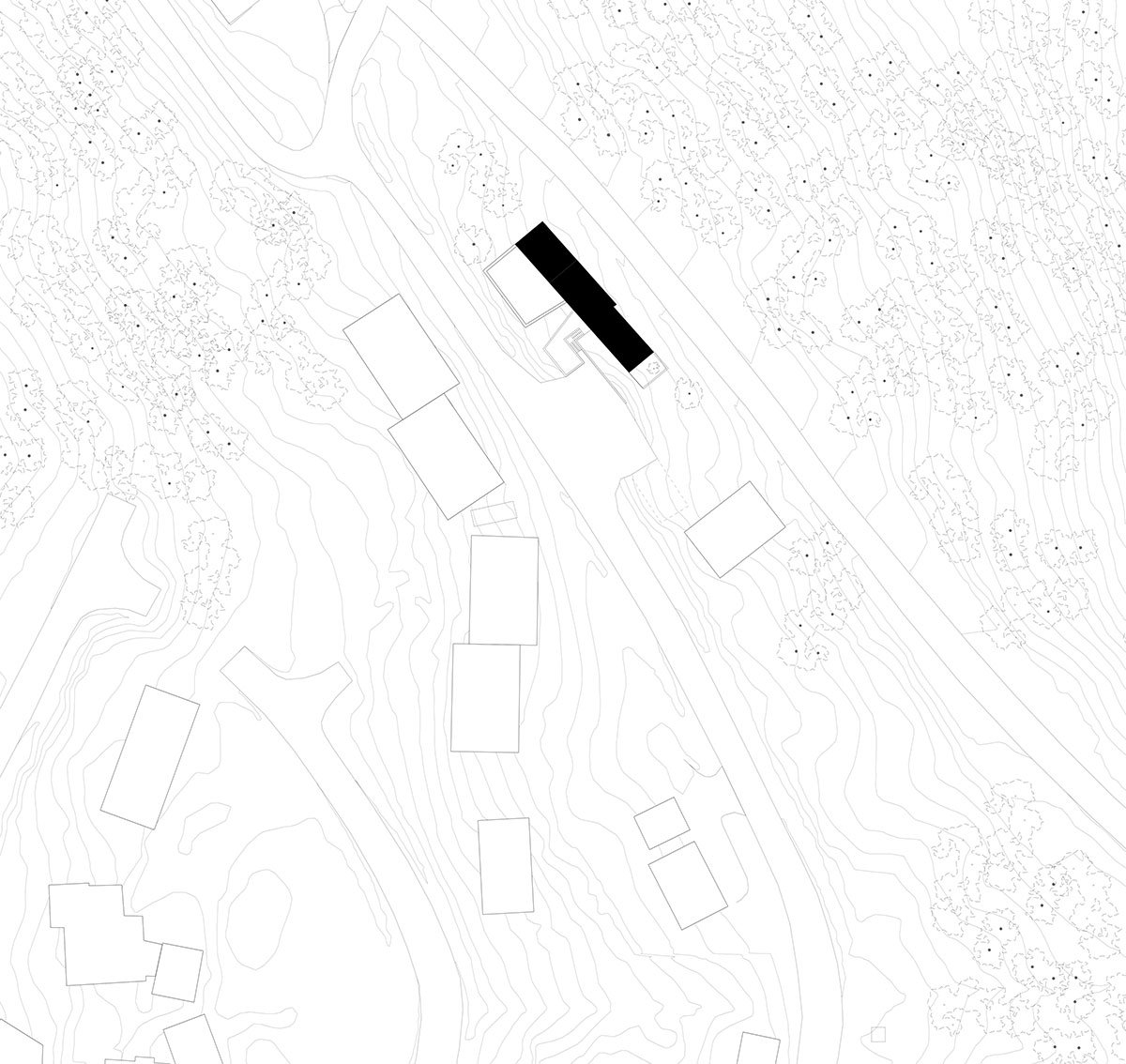 The brick house with a tower is located in a steep hill facing south-west, a few kilometers south of Lillehammer, overlooking the lake of Mjøsa and with views towards the city centre. A trail path runs parallell with the house on the rear side. The placement of the house is chosen to get long views above the adjacent neighbours below, whilst at the same time preserving the views from the trail path. The volume is dug into the ground as a long, slender building body with a small tower rising over the north end of the site.