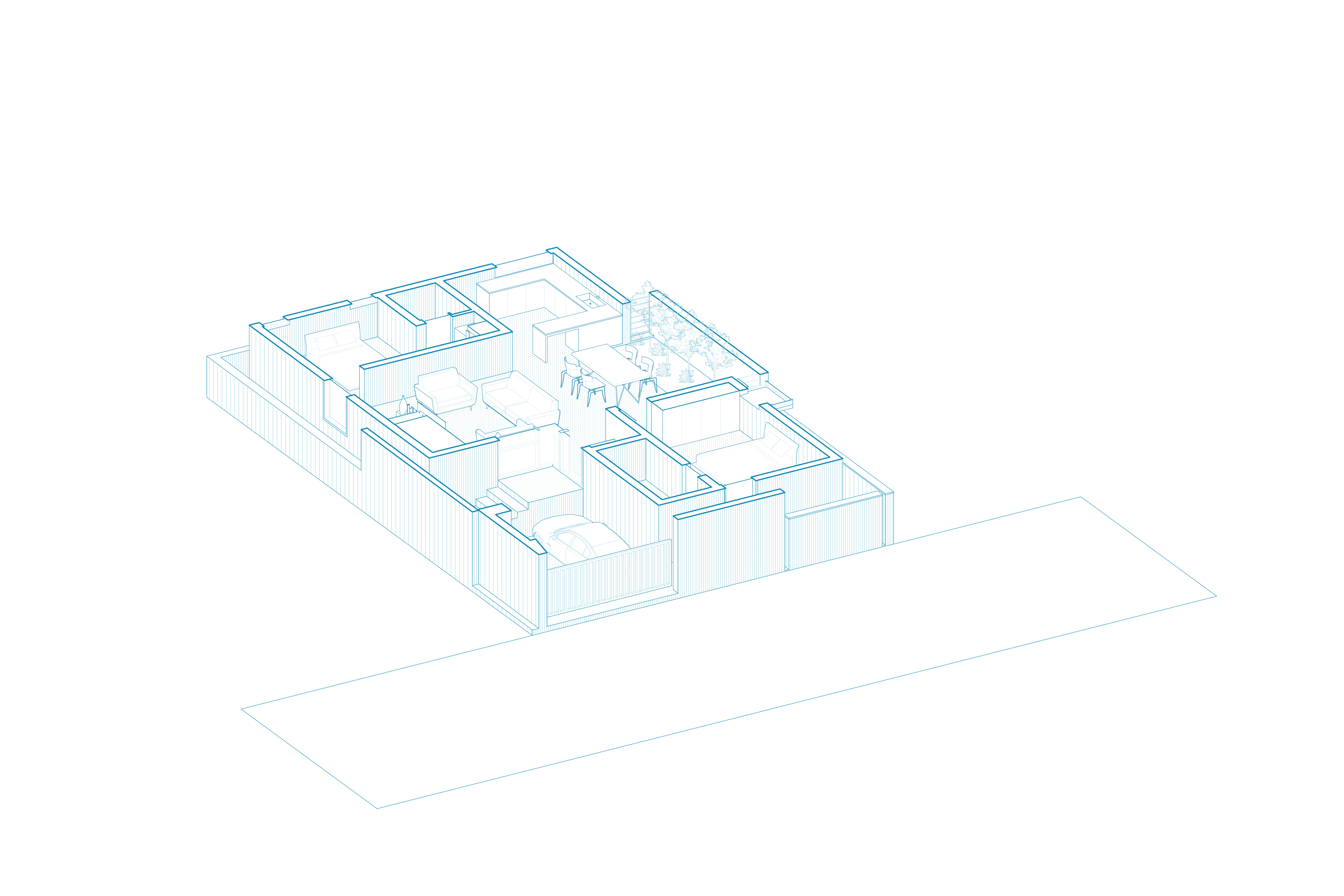 Throughout Bridge Bungalow, a restrained color palette of black, white, and wood is enlivened by accents of turquoise, infusing each space with a sense of vibrancy and warmth. In this project, SpaceDNA has tried not only to create a dwelling but a sanctuary—a place where form and function converge to create a timeless retreat for generations to come.