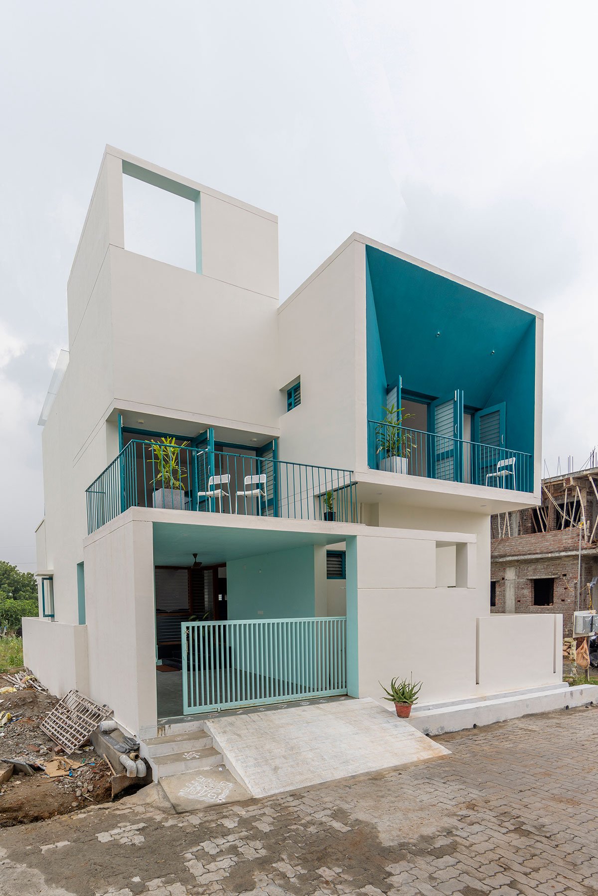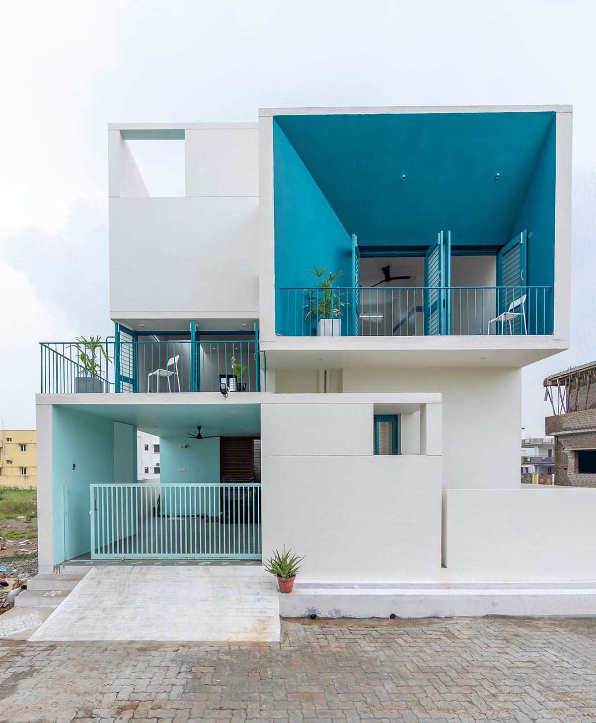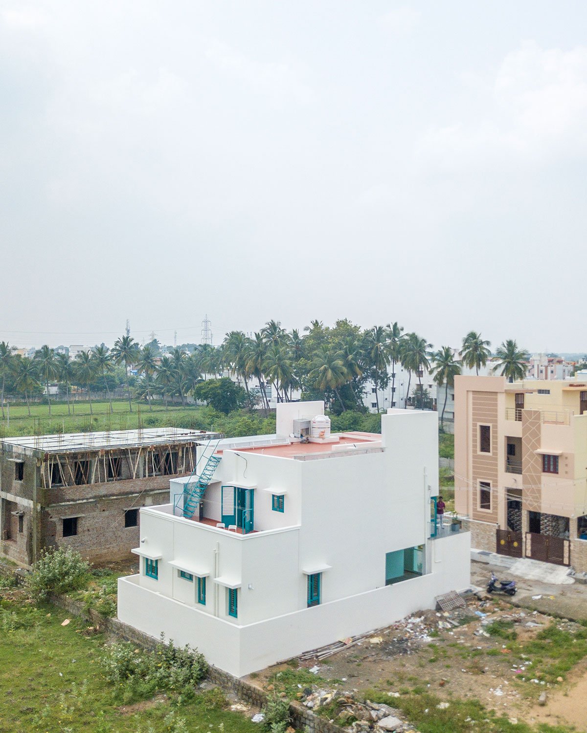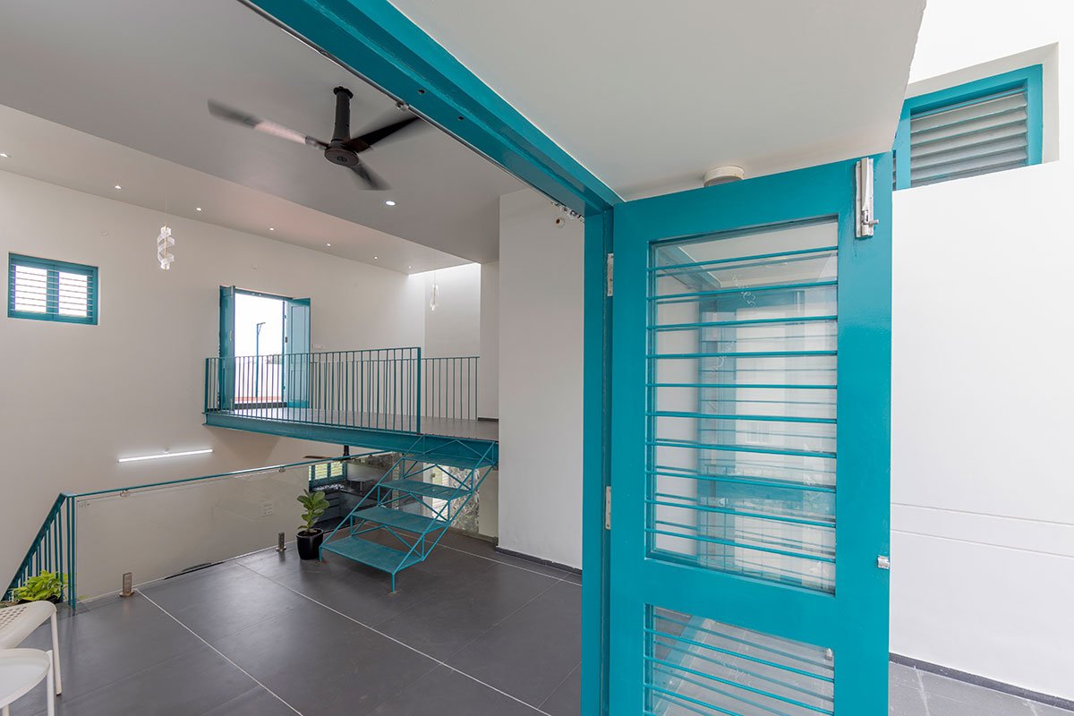 [Text as submitted by architect] Nestled within the serene peri-urban landscape of Theni, Tamil Nadu, Bridge Bungalow was designed on a classic 30’x50’ west-facing plot. In response to the client’s discerning taste for simplicity with an eye towards future expansion, the design ethos at SpaceDNA—short for Space Daylight Nature and Architecture—sought to encapsulate the quintessence of good design: volumetric balance, optimal daylight infusion, natural ventilation, and lush greenery seamlessly interwoven into the architectural DNA.