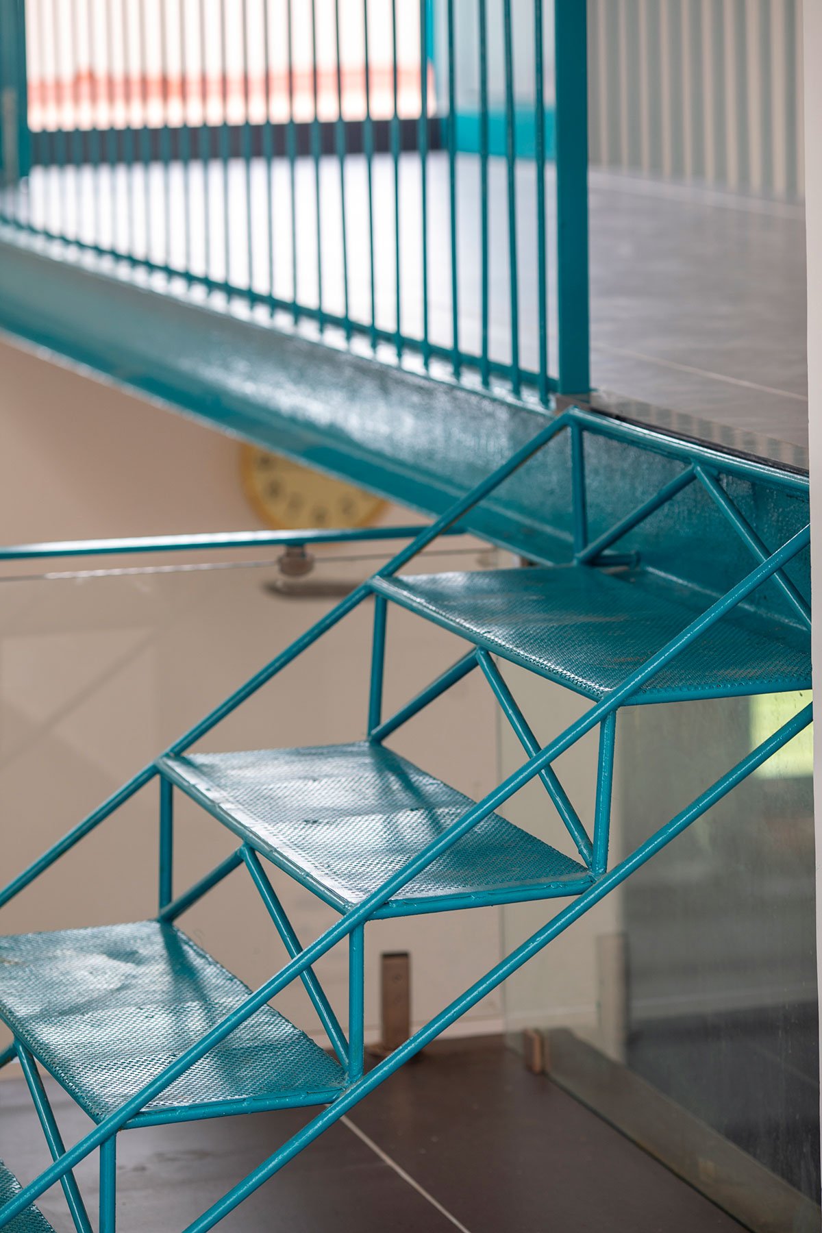 A steel bridge suspended in the double-height space serves as both a practical passageway and a striking architectural feature, lending the home its distinctive moniker.